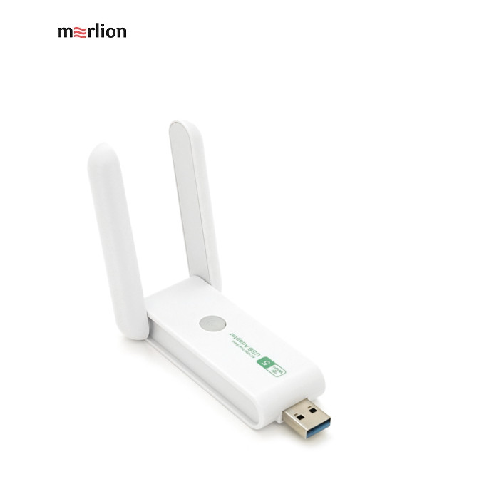 | Бездротовий мережевий адаптер Wi-Fi-USB3.0 Merlion LV-UAC15,RTL8812BU, з 2-ма антенами 10см,802.11bgn, 1200MB,2.4 GHz,Blister |