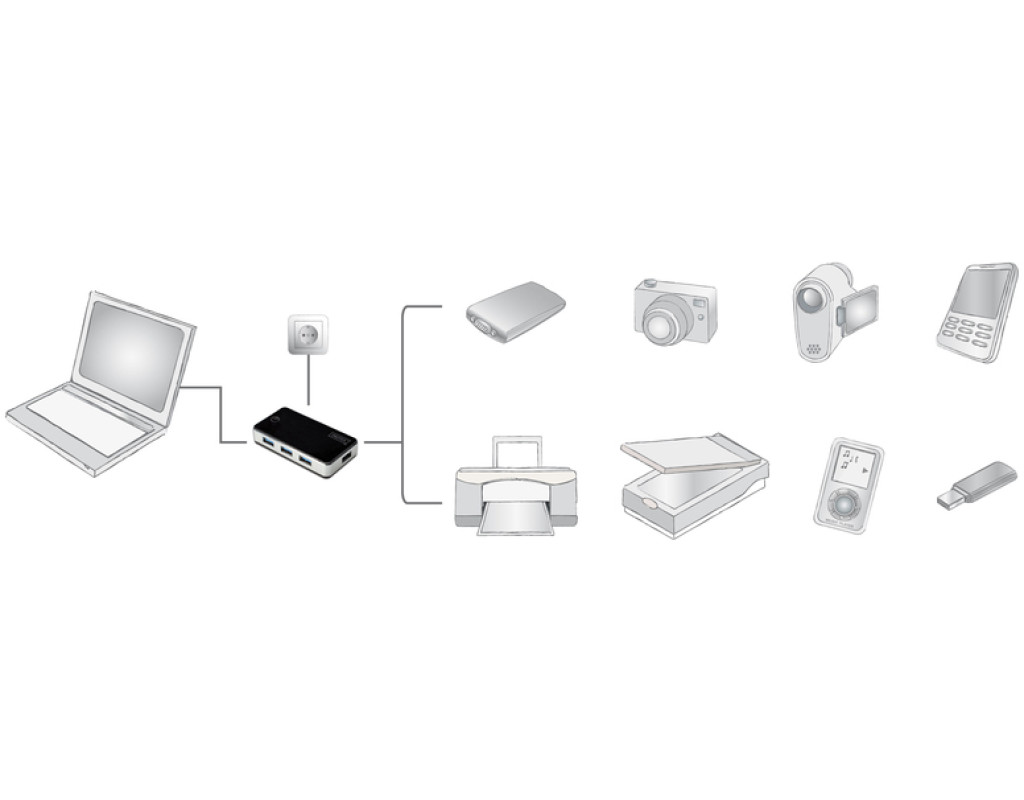 | 4-х портовый USB 3.0 концентратор DIGITUS позволяет просто подключить до четырех USB-устройств одновременно к ПК или Mac. Позволяет подключать ваши любимые устройства и использовать преимущества более высокой скорости соединения через USB 3.0 (до 10 раз быстрее, чем USB 2.0). Дизайн этого устройства подкупает лаконичностью и элегантностью благодаря имитации черной полированной поверхности фортепьяно на верхней и нижней поверхностях устройства в оправе алюминиевого цвета. |