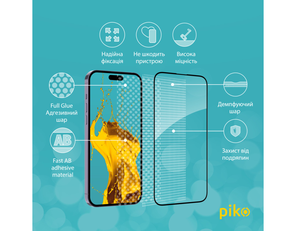 • Клеевой слой нанесен на всем стекле. Благодаря этому обеспечивает надежную и сильную фиксацию всего стекла, а не только его краев. При необходимости такое стекло легко снять без риска повредить экран или его покрытие.