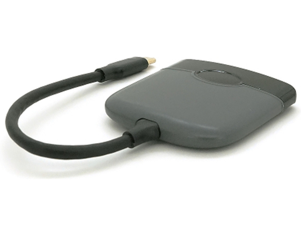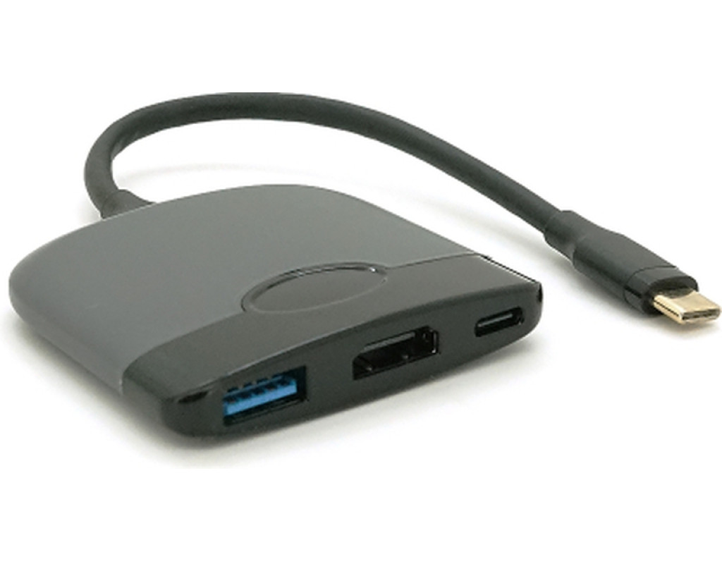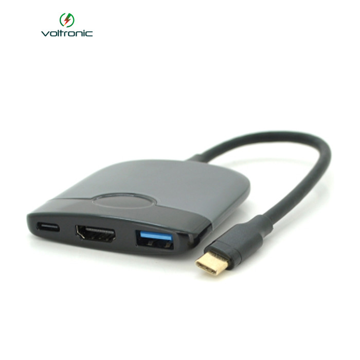 Кабель Type-C с разъемом папа из пластика, с разъемами HDMI и USB3.0, а также разъемом PD (Power Delivery), длиной 23 см, черного цвета. |