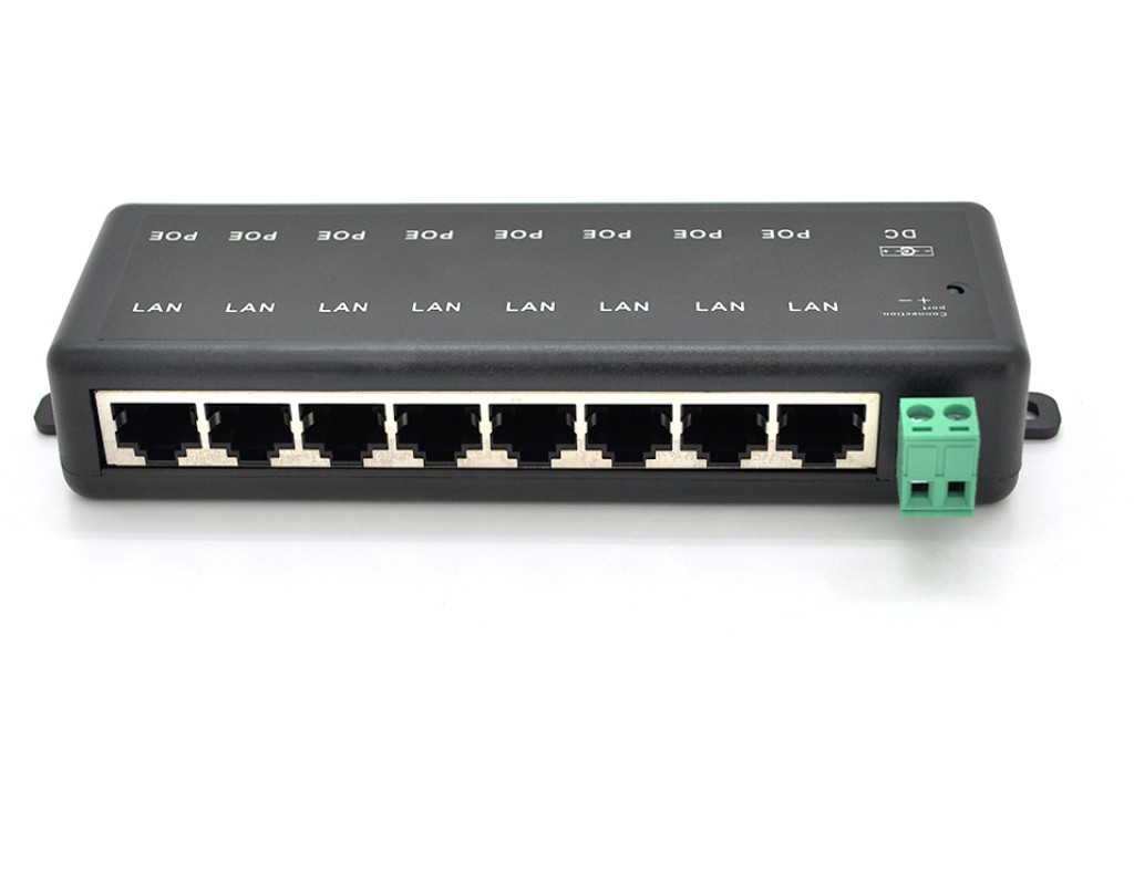 | 8-портовий POE-інжектор живлення, з 8xRJ45 портами Ethernet 10 / 100Мбит / с, IEEE802.3af / at, 12-48V, PIN45+ / 78- |