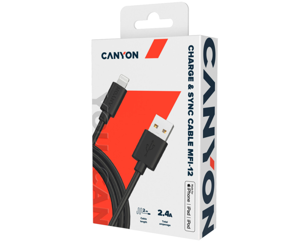 Дата кабель USB 2.0 AM to Lightning 1.0m MFI black Canyon (CNS-MFIC12B)