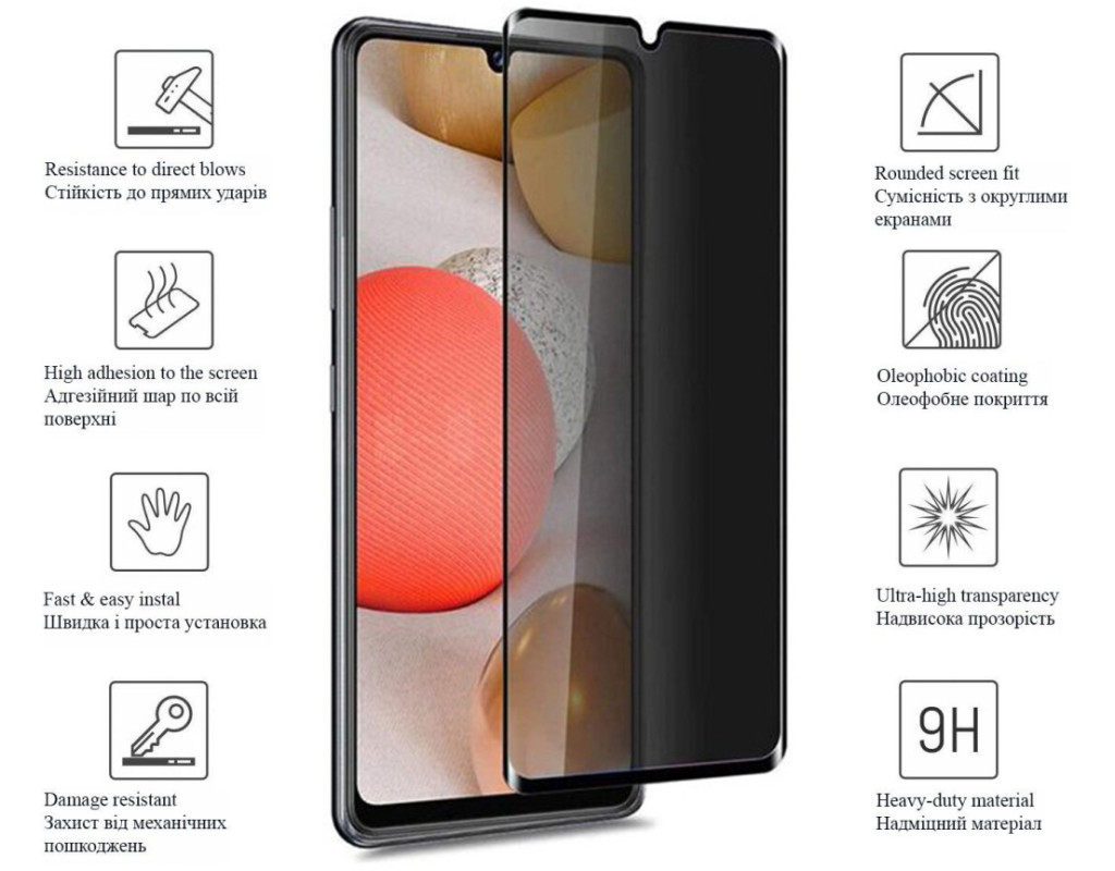 Защитное стекло Drobak для экрана гораздо эффективнее обычных защитных пленок, так как оно изготовлено из специально обработанного закаленного стекла. Стекло защищает экран от царапин даже при контакте с острыми металлическими предметами. Кроме того, стекло так же защищает экран от ударов, так как устанавливая его на телефон Вы получаете двойной запас прочности экрана. Форма стекла полностью соответствует данной модели смартфона, а за счет своей жесткости легко устанавливается на экран. Для этого достаточно очистить экран от грязи, снять со стекла пленку, закрывающую клейкий слой, и ровно приложить стекло на экран телефона. Снимается стекло так же легко, поскольку клейкий слой изготовлен на основе силиконового покрытия и после снятия не оставляет следов. Данное защитное стекло имеет уникальное покрытие, с фильтром конфиденциальности, которое позволяет скрыть информацию на экране вашего устройства от посторонних. Благодаря этому покрытию, экран смартфона будет виден только под прямым углом, а при взгляде со стороны, разглядеть на нем что-то, а тем более текст, будет невозможно. Очень полезно в общественном транспорте или среди большого количества людей, если вы не любите, когда кто-то наблюдает за происходящем на вашем смартфоне. Данный фильтр имеет небольшой недостаток: он снижает яркость экрана. Поэтому сразу после установки стекла вам, возможно, захочется вручную выставить ее побольше.