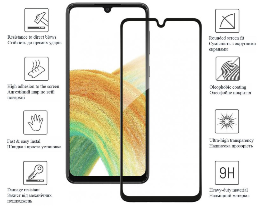 Назначение - для телефона, Вид покрытия - глянцевое, Совместимость с моделями - Samsung Galaxy A33, Количество в упаковке - 1 шт