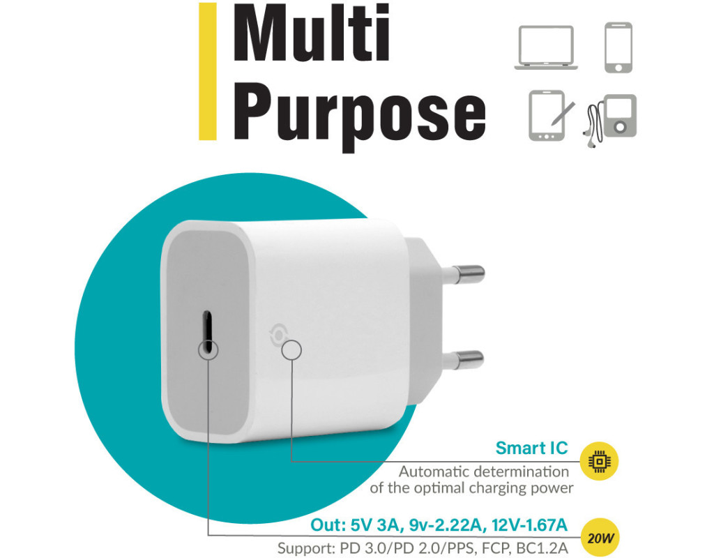 | Зарядное устройство Piko TC-PD201 (1283126521447) — это незаменимый аксессуар для каждого, кто ценит скорость и надежность зарядки. Благодаря инновационному разъему USB Type-C, этот адаптер обеспечивает эффективную зарядку новейших смартфонов и других цифровых устройств. Его универсальность позволяет адаптироваться под индивидуальные потребности устройств, обеспечивая максимальную стабильность и безопасность. Устройство поддерживает быструю зарядку Quick Charge 3.0, что позволяет значительно сократить время пребывания гаджетов "на проводе". Зарядное устройство автоматически определяет оптимальные параметры для зарядки, обеспечивая выходную мощность до 20 Вт и ток до 3 А. Все это гарантирует наиболее безопасное и быстрое заполнение энергии в аккумуляторах. Особое внимание уделено эргономике и дизайну зарядного устройства. Компактный и лаконичный, он не мешает другим розеткам и легко поместится в любую сумку или карман, становясь верным спутником в путешествиях и командировках. Зарядное устройство Piko TC-PD201 изготовлено из высококачественного негорючего пластика, что подчеркивает его долговечность и надежность. Встроенные системы защиты от перегрева, перегрузок, перенапряжений и электрических импульсов делают его безопасным, обеспечивая спокойствие при ежедневном использовании. С этим зарядным устройством вы получаете не только технологически совершенное решение для зарядки, но и уверенность в качестве, которая подкрепляет комфорт и удобство ваших повседневных задач. |