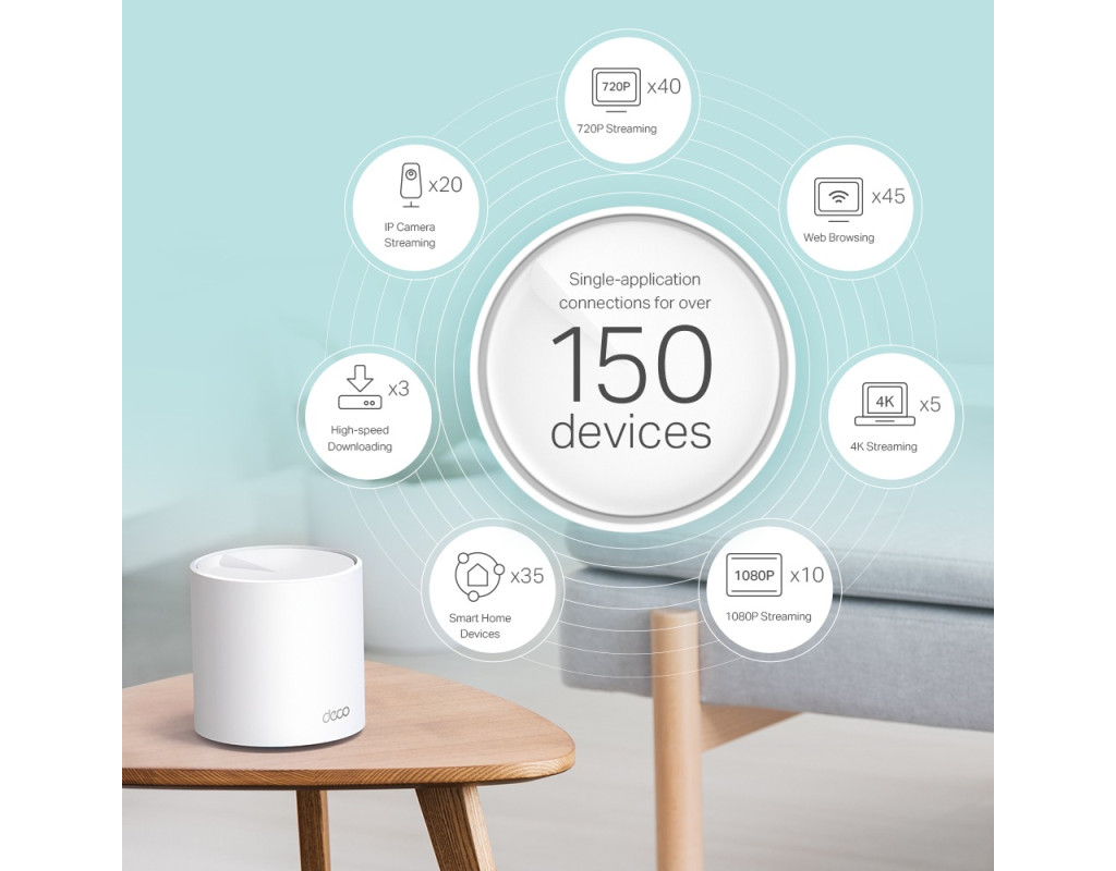 OFDMA и MU-MIMO увеличивают пропускную способность в четыре раза для одновременной передачи данных большому числу устройств. Покрытие Wi-Fi 6 с бесшовным роумингом – по всему дому. Ультранизкая задержка: отсутствие высокого пинга наиболее ощутимо в онлайн-играх и видеочатах. Несколько модулей формируют единую домашнюю сеть, которая обеспечивает наилучшее подключение при передвижении по дому. Шифрование WPA3 и TP-Link HomeCare предоставляют персонализированные функции родительского контроля, антивируса и QoS для безопасного подключения. Простая установка: процесс установки пошагово описан в приложении Deco. |