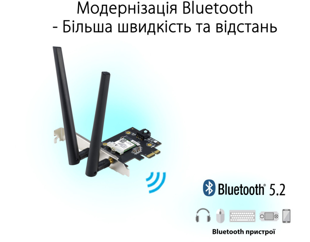 Адаптер ASUS PCE-AXE5400 с интерфейсом PCI-E и двумя внешними антеннами. Поддержка каналов 160 МГц, Bluetooth 5.2, WPA3, OFDMA и MU-MIMO. Комплексное решение ASUS PCE-AXE5400 обеспечивает высокую производительность и широкие функциональные возможности Bluetooth 5.2 – расширенный радиус действия, более высокая скорость передачи, лучшая защита от помех. Скоростные стандарты ASUS PCE-AXE5400 – скорость выше в 4.6 раза, более эффективное подключение и улучшенная безопасность сети. Меньше мертвых зон благодаря внешним антеннам – регулируемые антенны позволяют их легко позиционировать для улучшения качества приема. |