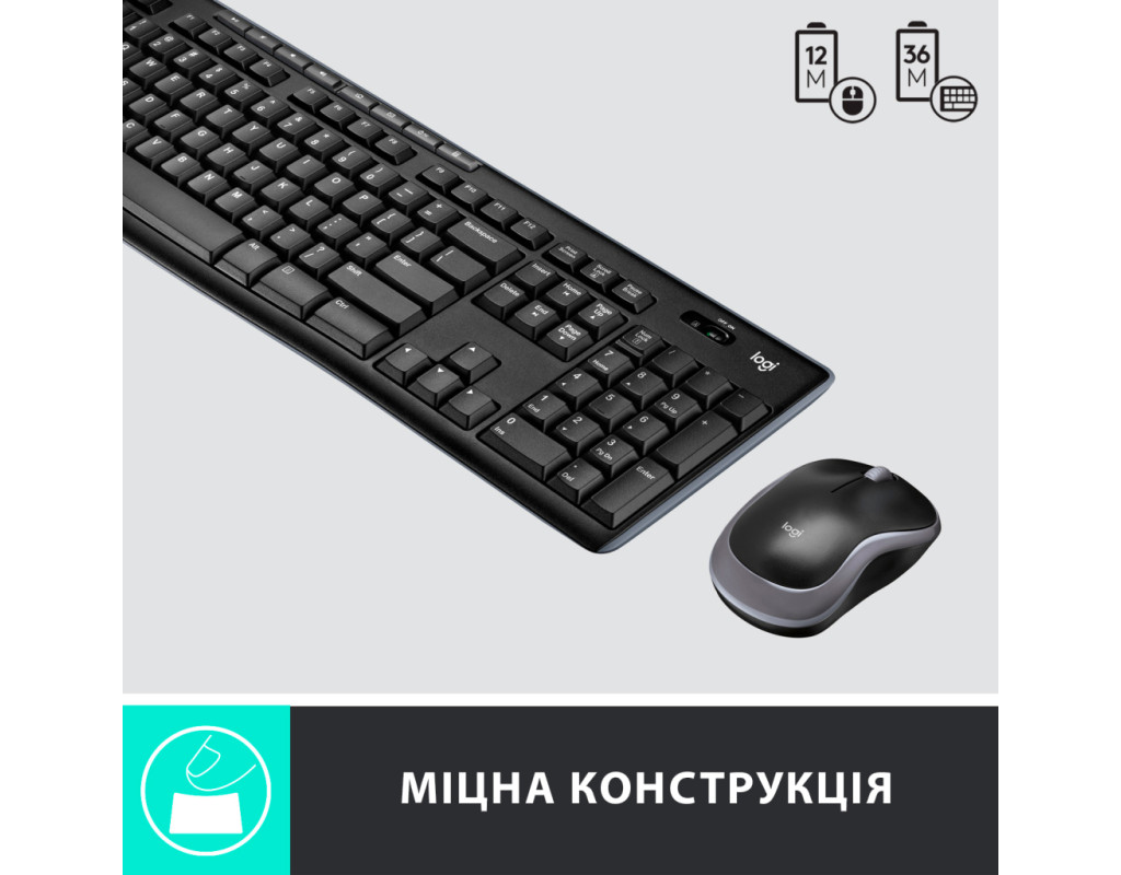 Компактный комплект клавиатуры с мышью Logitech Wireless Combo MK270 сочетает в себе удобство беспроводной технологии с надежностью на уровне проводного соединения. Усовершенствованная технология беспроводной связи на частоте 2.4 ГГц Можно работать и играть где угодно, например на диване – беспроводная связь позволяет практически исключить какие-либо задержки, сбои и помехи при работе в радиусе 10 метров. Простота технологии Plug-and-Play Настройка занимает всего несколько секунд — достаточно просто вставить беспроводной приемник в USB-порт компьютера, чтобы приступить к работе с клавиатурой и мышью без какого-либо программного обеспечения. Влагозащищенная клавиатура Жидкость вытекает из клавиатуры, позволяя не беспокоиться о повреждении оборудования из-за случайного попадания жидкости. Восемь специальных клавиш То, что нужно чаще всего, всегда под рукой благодаря восьми специальным клавишам для быстрого доступа к Интернету, электронной почте, а также функциям воспроизведения, паузы, регулировки громкости и т. д. Компактная клавиатура для удобства работы Элегантная клавиатура занимает мало места и удобна в работе благодаря полноразмерным клавишам и широкой фигурной клавише пробела. Надежность Logitech Пользователи оценят высокое качество и надежность, сделавшие компанию Logitech мировым лидером в производстве клавиатур и мышей. Надежные клавиши с УФ-покрытием Специальное покрытие защищает клавиши от износа, и они выглядят как новые на протяжении долгих лет. Требования к системе: Windows XP, Windows Vista, Windows 7 или Linux с ядром версии 2.6 или более поздней версии, USB-порт. Комплектация: - Клавиатура