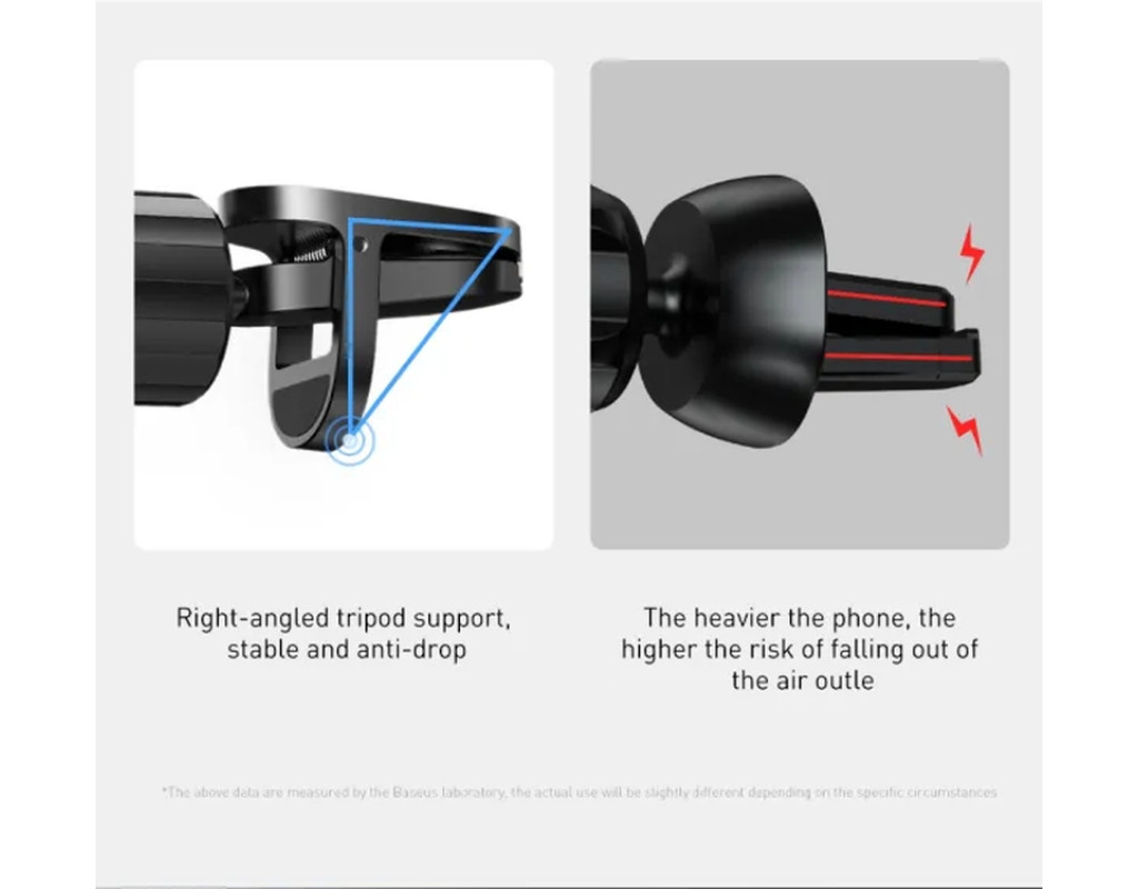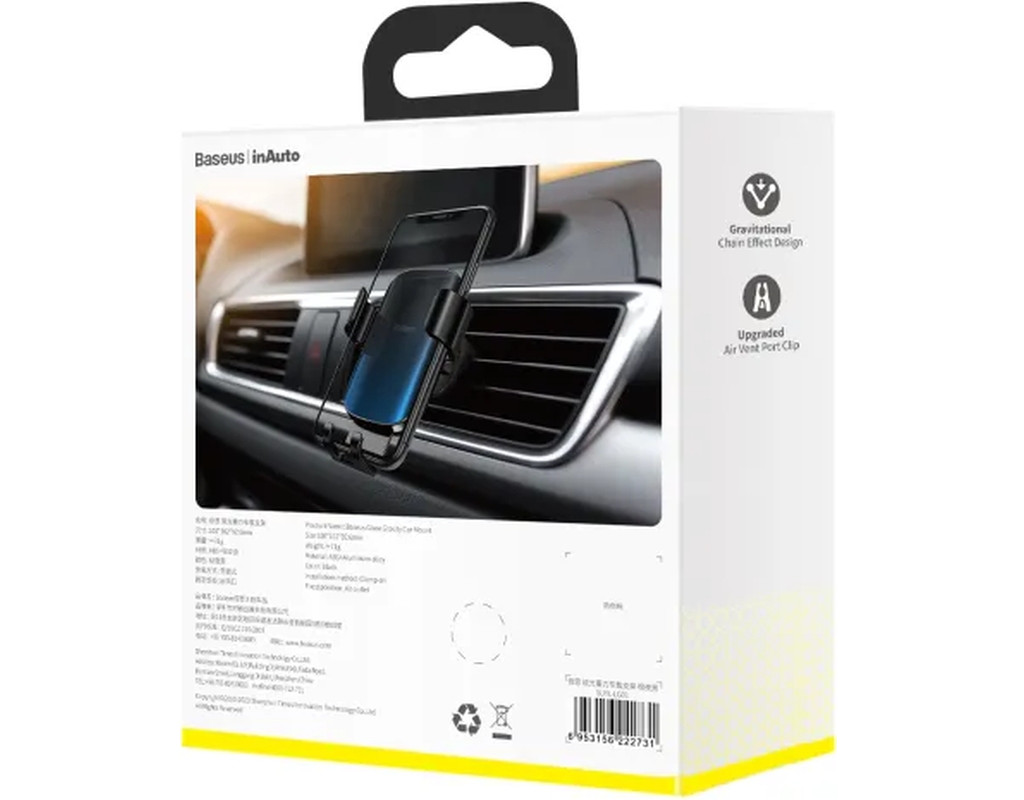 Автодержатель для телефона Baseus Glaze Gravity Car – это элегантный, функциональный и стильный девайс, который обеспечит надежную фиксацию вашего смартфона в автомобиле. Легко устанавливается на вентиляционную решетку на удобной Вам высоте благодаря зажиму с анти-скользящим силиконовыми накладками, которые исключат возможность падения или выскальзывания как самого крепления, так и закрепленного на нём смартфона. Вы можете быть уверенными, что телефон останется на месте, даже при езде по неровностям. Это позволит всегда держать телефон под рукой, слушать музыку, в случае необходимости просматривать навигационную карту. Автомобильный держатель не будет занимать много места в автомобиле и не будет мешать или загораживать обзор, отвлекая водителя от дороги – благодаря компактным размерам. Фиксация смартфона одним движением - благодаря оригинальному механизму Ваш телефон надежно крепится в держателе. Принцип его работы предельно простой. Смартфон фиксируется за счет собственного веса, надавливая на нижнюю грань крепления и приводя в движение два боковых фиксатора, зажимающие телефон по бокам. Держатель для телефона в машину Baseus Glaze Gravity Car изготовлен из алюминиевого сплава и пластика, что делает его весьма стильным и прочным. Это гарантирует долговечность, надежность держателя, он прослужит длительное время, полностью выполняя поставленные перед ним задачи. Внутренняя часть боковых зажимов имеет специальное мягкое защитное покрытие, что исключает появление царапин и потертостей на корпусе смартфона при его установке в держатель. А гладкий материал внутренней части Baseus Glaze Gravity Car не даст корпусу смартфона поцарапаться. Кроме того, в нижней фиксирующей грани есть функциональное отверстие, позволяющее подключать и заряжать смартфон не вытаскивая его из держателя. Поэтому, для зарядки гаджета от прикуривателя Вам не потребуется вынимать его из держателя. Также, держатель с таким принципом фиксации не оказывает влияния на уровень сигнала или различные беспроводные подключения. Особенности:
