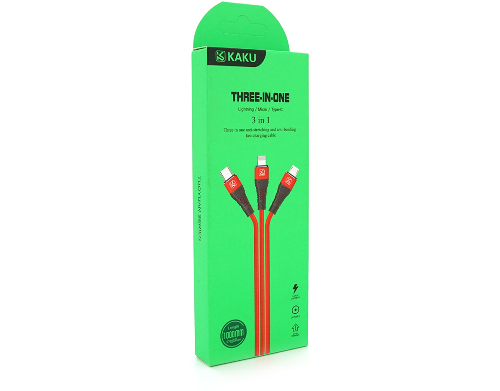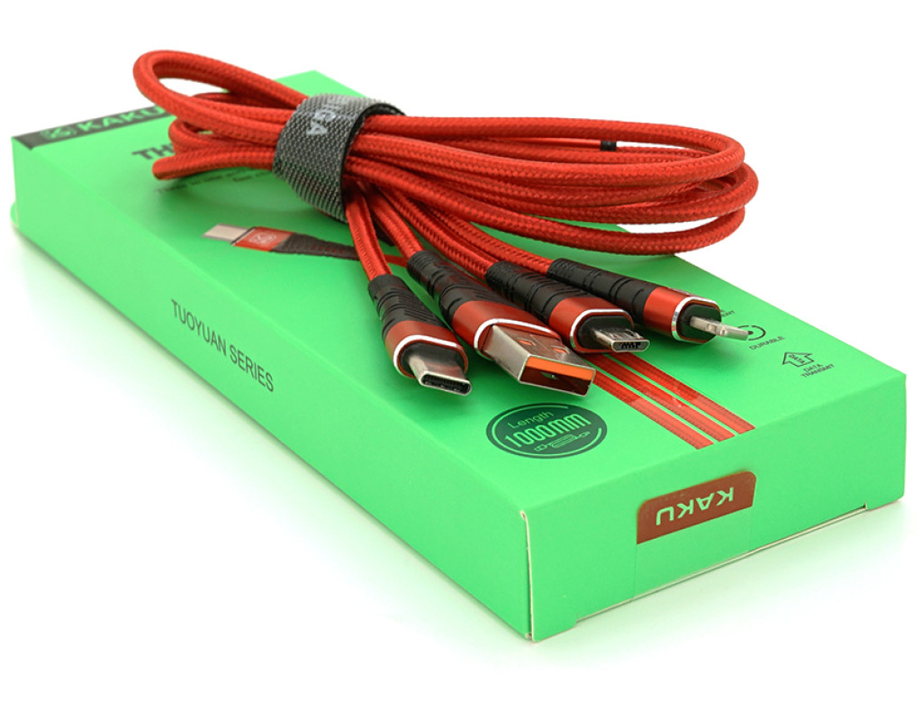 | Опис: Кабель для зарядки та передачі даних KSC-296 TUOYUAN 3 в 1 Micro / Iphone / Type-C довжиною 1 метр, червоного кольору, поставляється в коробці. Характеристики: - Сумісність: Мікро-USB, iPhone, Type-C - Довжина: 1 метр - Колір червоний - У комплекті: коробка |