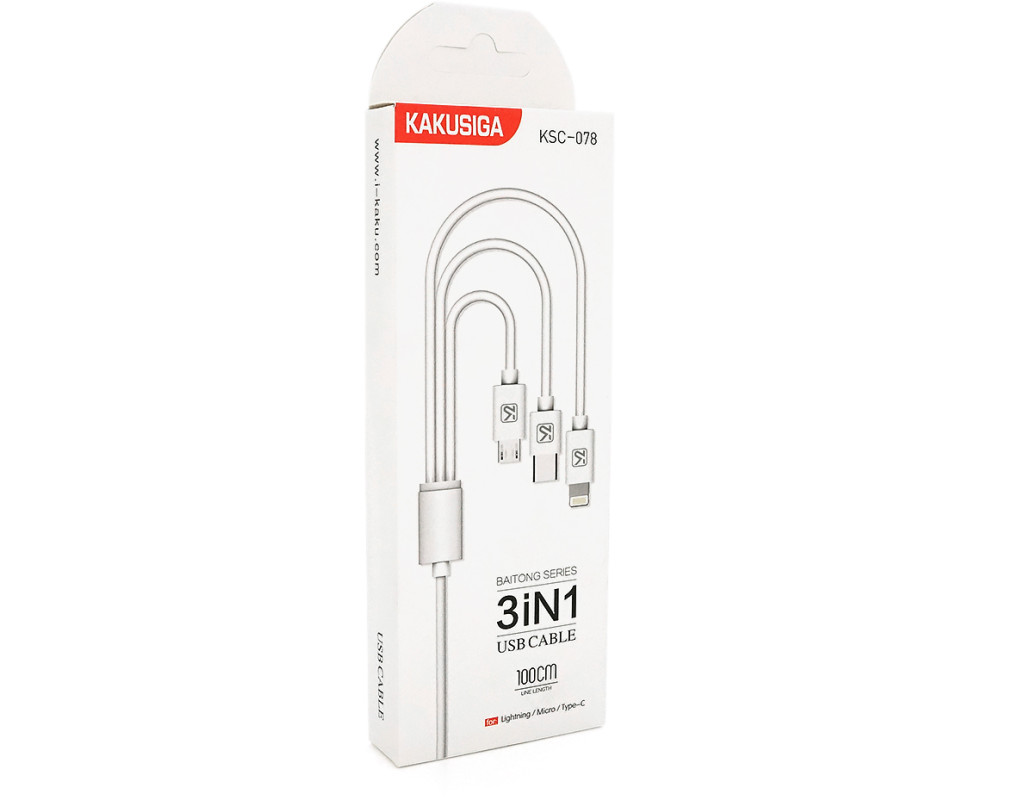 | Опис: Кабель для заряджання та передачі даних KSC-078 BAITONG 3 в 1 Micro / Iphone / Type-C, довжиною 1 метр, білого кольору, поставляється в коробці. Характеристики: - Модель: KSC-078 BAITONG - Тип: 3 в 1 (Micro / Iphone / Type-C) - Довжина: 1 метр - Колір білий - Упаковка: коробка |