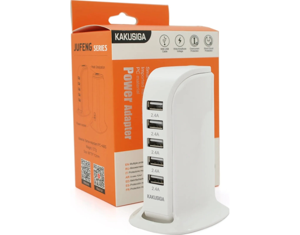 | Зарядное устройство iKAKU KSC-741 Desktop 5xUSB - это незаменимый аксессуар для всех, кто ценит удобство и эффективность в повседневном использовании гаджетов. Его пять USB портов позволяют одновременно заряжать различные устройства, такие как фитнес-браслеты, геймпады, TWS наушники, планшеты, смарт-часы, экшн-камеры, смартфоны и рации. Благодаря максимальному выходному току 5A, зарядка осуществляется быстро и эффективно, обеспечивая необходимую мощность каждому подключенному устройству. Особенности этого зарядного устройства выделяются высокой качеством и практичностью. Каждый USB-порт способен выдавать ток до 2.4A, что гарантирует быструю зарядку без вреда для заряжаемых устройств. Изготовлен из огнестойкого материала ПК, он обеспечивает безопасность использования, даже при интенсивной нагрузке. Эргономичный дизайн с широким диапазоном напряжения делает этот адаптер универсальным решением для любого пространства: дома, офиса или путешествия. Благодаря своему компактному размеру (66х79х112 мм) и весу 127 г, iKAKU KSC-741 легко впишется в интерьер и останется незаметным, но функциональным элементом вашей электронной экосистемы. Стильный белый цвет подчеркивает эстетическое совершенство, тогда как технические характеристики уверенно обеспечивают длительный срок эксплуатации. Выберите iKAKU KSC-741, если ищете надежность, качество и мультифункциональность в одном компактном решении. |