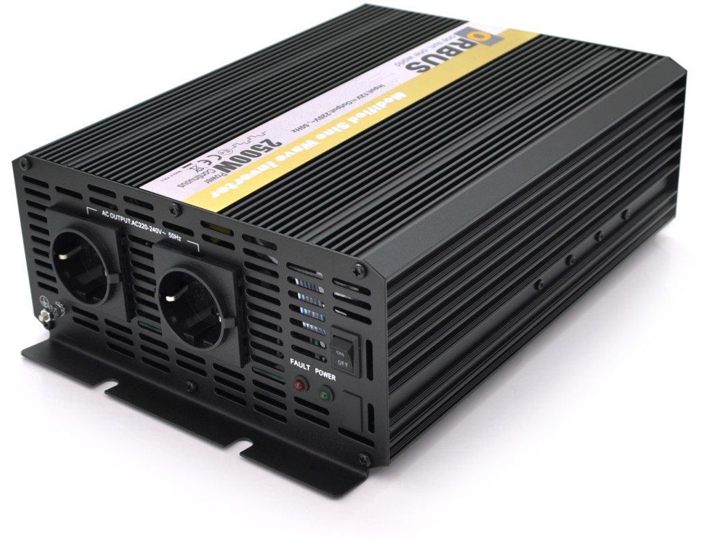 | Інвертор напруги ORBUS ORMS2500 (2500Вт), 12 / 220V, approximated, 2 Shuko, 2 клемні дроти, 9 запобіжників, Box.Q20 |