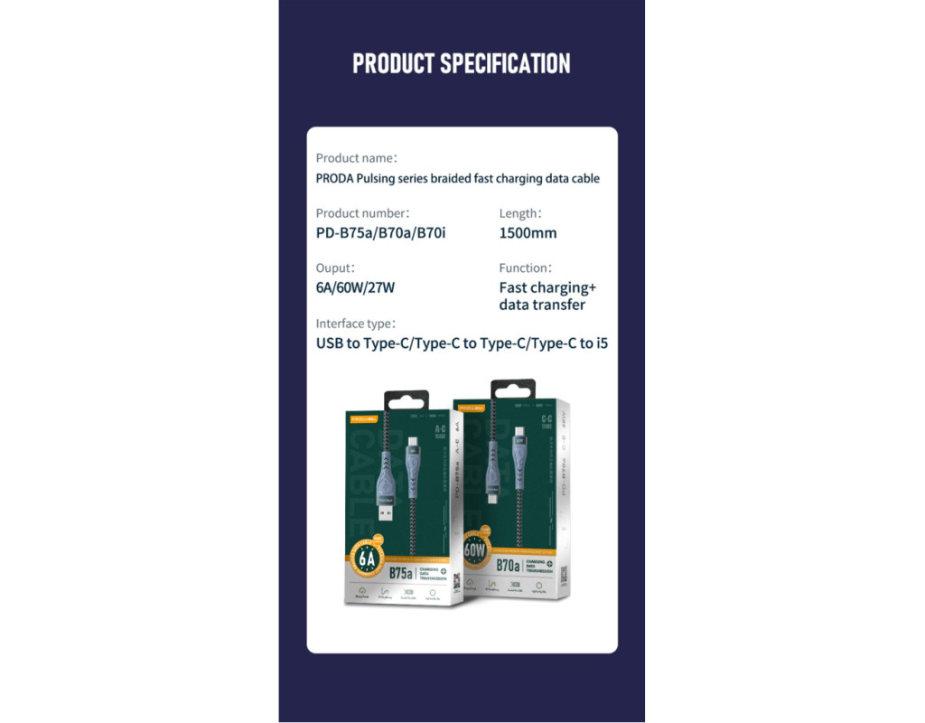 Преимущества кабеля Proda PD-B70i Type-C to Lightning Pulsing Fast Charging: