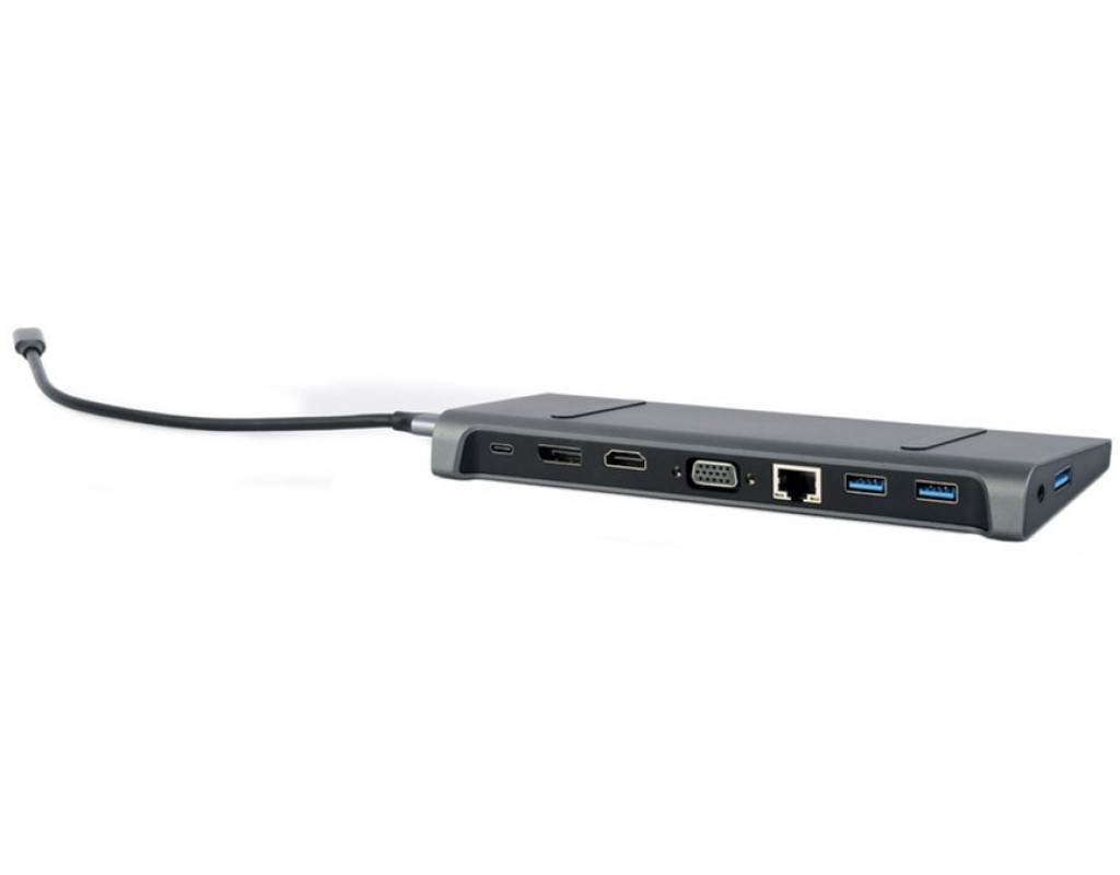 Концентратор Cablexpert USB-C 9-in-1 (USB-hub + HDMI/VGA/PD/CR/LAN/3.5mm) (A-CM-COMBO9-02)