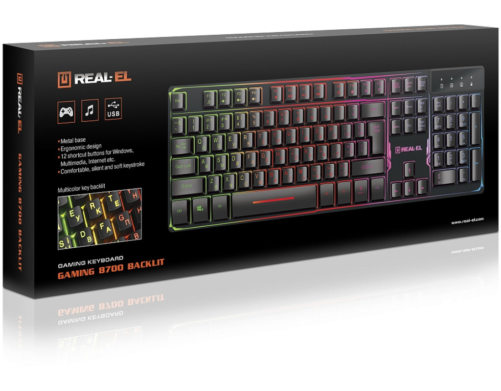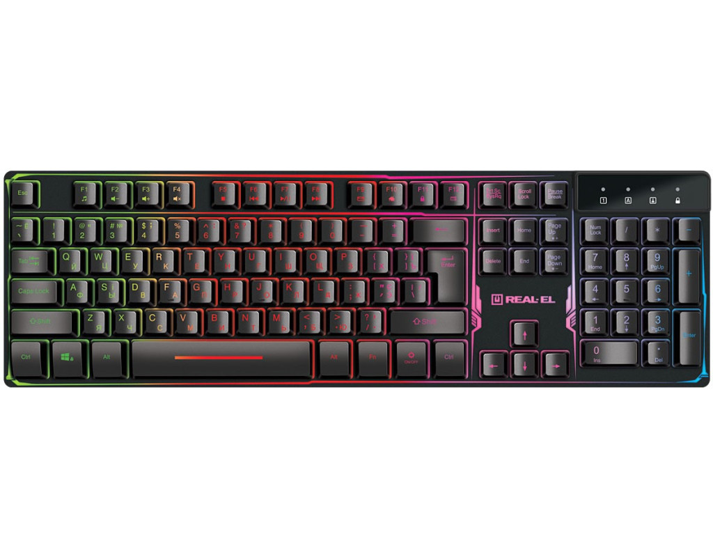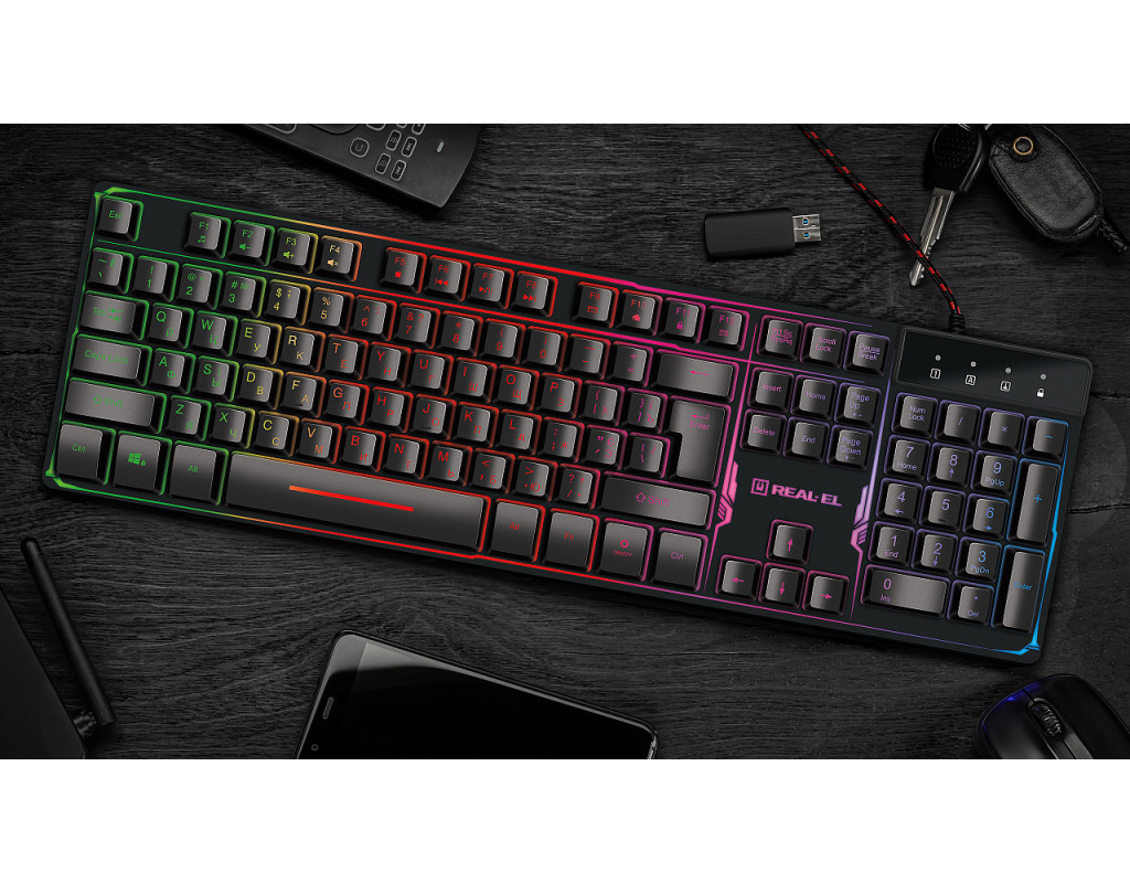 | Клавиатура REAL-EL 8700 Gaming Backlit, черная — это незаменимый инструмент для каждого геймера, который стремится достичь максимального уровня погружения в виртуальный мир. Эта игровая клавиатура, созданная с учетом всех требований современных кибератлетов, обеспечивает отличную производительность и долговечность благодаря своей мембранной конструкции и высококачественной мембране. Одним из главных преимуществ REAL-EL 8700 является её многоцветная подсветка клавиш, которая не только добавляет эстетической привлекательности, но и повышает видимость клавиш в ночное время. Это особенно ценно во время напряжённых игровых сражений, когда каждая миллисекунда имеет значение. Удобный, тихий и мягкий ход клавиш делает длительное использование клавиатуры бесшумным и комфортным, а металлическая подставка добавляет стабильности во время интенсивных сессий. Полноразмерный формат клавиатуры идеально подходит для пользователей, которые привыкли к классическому расположению клавиш. REAL-EL 8700 поддерживает русскую, украинскую и английскую раскладки, что делает её универсальным выбором для пользователей из различных языковых сред. Благодаря проводному подключению через USB, эта клавиатура обеспечивает стабильное и быстрое соединение с вашим ПК, а совместимость с Windows, Linux и Mac OS позволяет использовать её без ограничений на различных операционных системах. Длительная эксплуатация без износа символов на клавишах гарантирует, что REAL-EL 8700 будет служить вам в течение многих лет. С этой клавиатурой у вас не возникнет проблем с совместимостью или комфортом во время игры. Выбирая REAL-EL 8700 Gaming Backlit, вы инвестируете в качество и надежность, которые станут вашими неизменными спутниками в мире игр. |