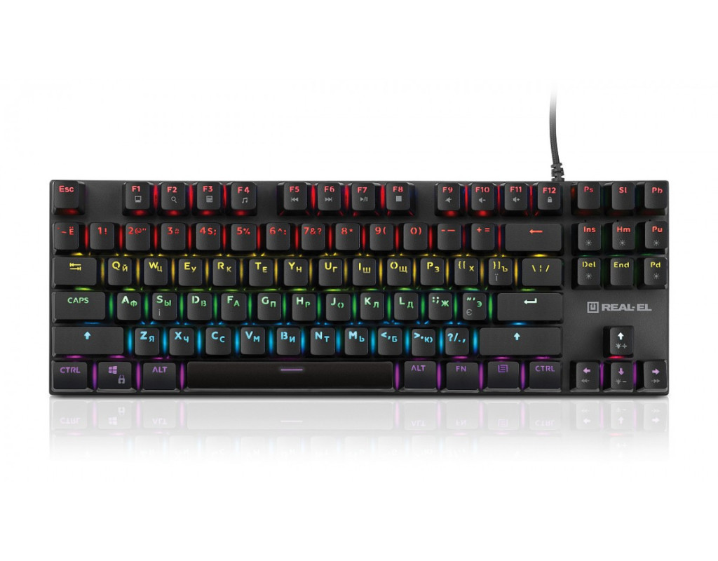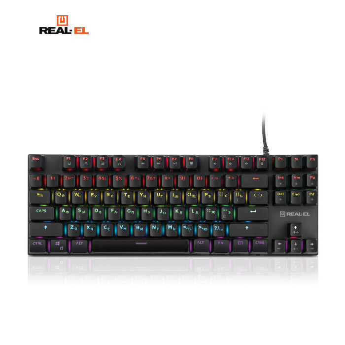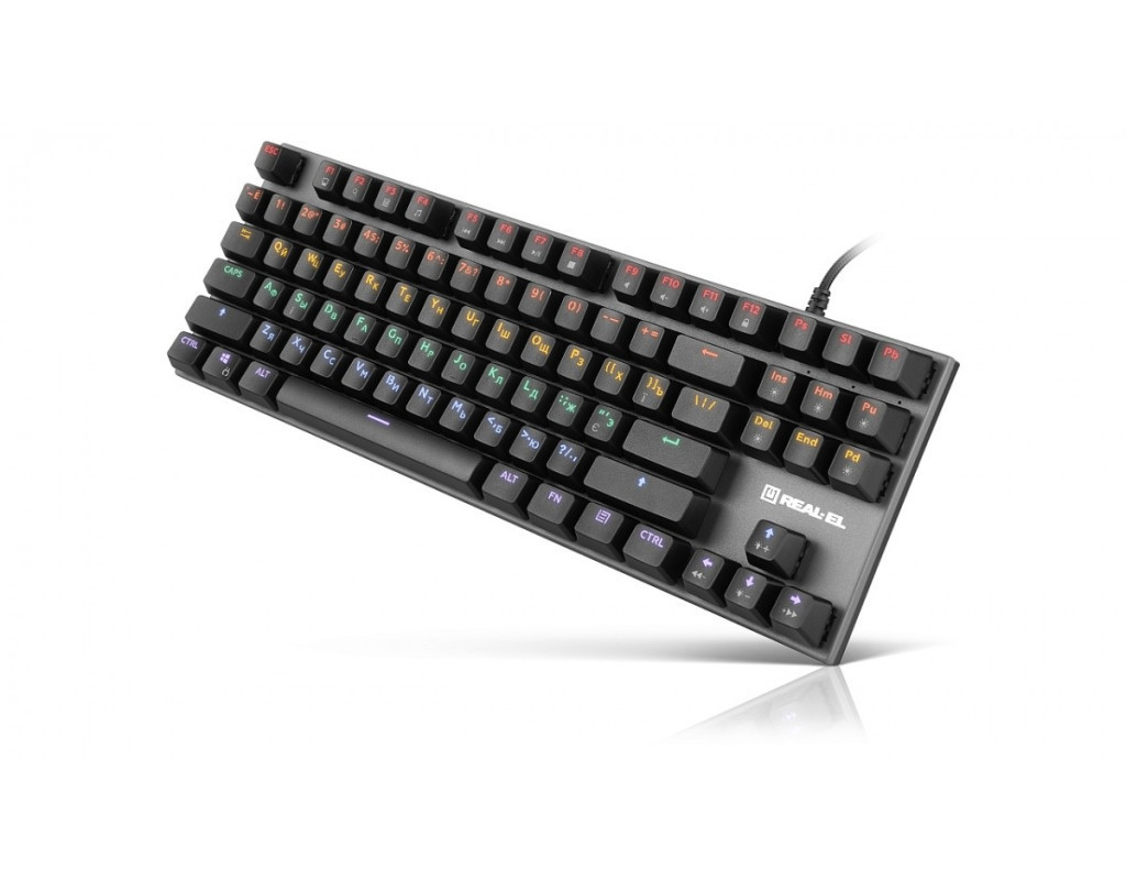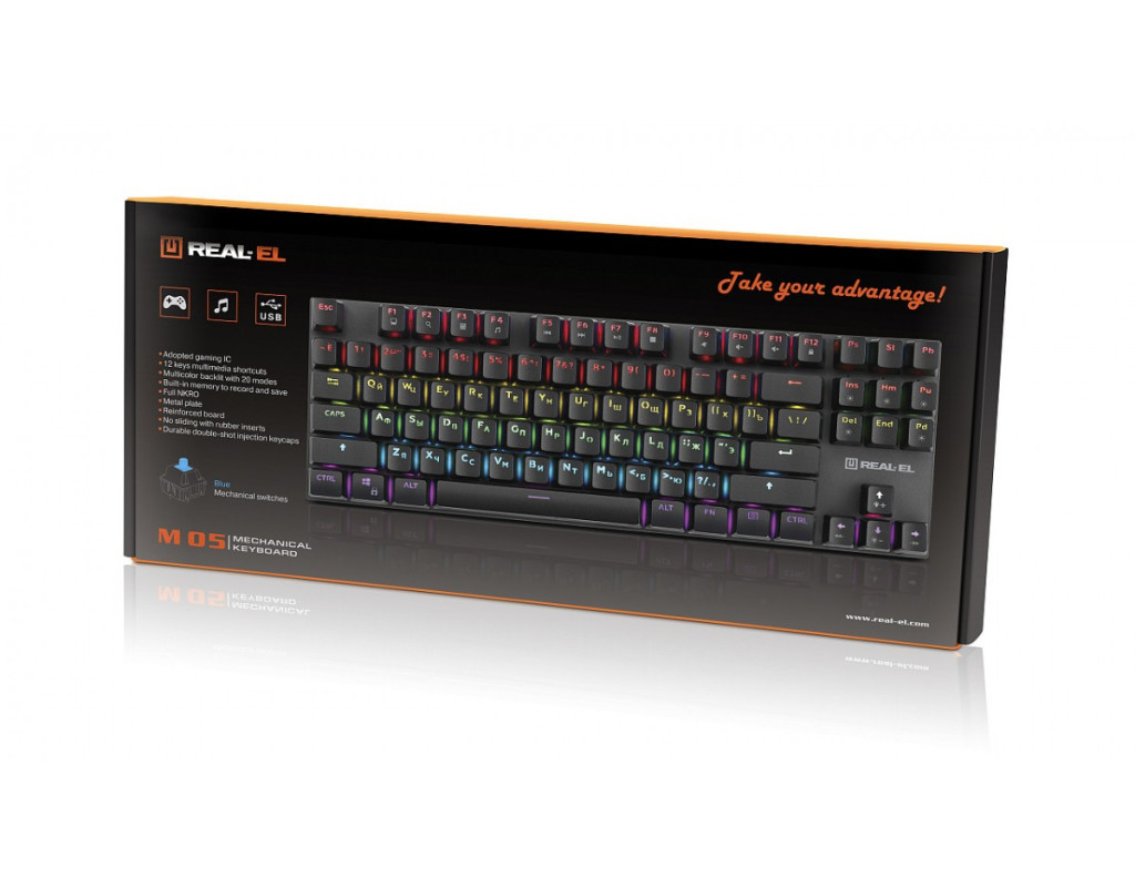 | Клавиатура REAL-EL M 05 Grey - это совершенство механической инженерии в сочетании с современным дизайном и функциональностью. Это идеальный выбор для геймеров и профессионалов, которые ценят высокую надежность и скорость реакции в каждой детали. С умом созданная для тех, кто ищет оптимальные решения для игр и работы, эта клавиатура отличается от других благодаря множеству уникальных особенностей. Оснащенная механическими переключателями Huano Blue, которые обеспечивают четкость и скорость нажатий, REAL-EL M 05 гарантирует длительную службу с более чем 60 миллионами нажатий. Инновационный дизайн без цифрового блока (формат TKL) позволяет экономить рабочее пространство, предоставляя больше места для маневров во время самых напряженных игр. Мультимедийность модели подчеркивается наличием 12 клавиш быстрого доступа, что делает управление музыкой, видео и другими мультимедийными функциями легким и интуитивно понятным. Благодаря поддержке подключения через USB-интерфейс, клавиатура легко интегрируется с вашей системой на Windows. Почувствуйте полную свободу с технологией NKRO, которая позволяет одновременно нажимать любое количество клавиш без конфликтов. Разноцветная RGB подсветка с 20 разнообразными режимами позволяет настроить атмосферу под собственное настроение и тип игры. В частности, каждый из режимов можно изменять, выбирая из 4 разновидностей подсветки, что создает уникальную визуальную атмосферу на вашем рабочем месте. Полупрозрачные клавиши, устойчивые к стиранию, гарантируют сохранение четкости символов даже после многочасовых сессий. Надежность конструкции подкреплена прочной металлической пластиной, что обеспечивает устойчивость и долговечность. Эргономичный дизайн обеспечивает комфортное использование без скольжения благодаря резиновым вставкам. Клавиатура REAL-EL M 05 Grey - это больше, чем просто устройство для игр или работы. Это инструмент, который сочетает в себе высокое качество, эстетичность и мощь для самых требовательных пользователей. С ней вы всегда будете на шаг впереди, завоевывая новые вершины в мире цифровых приключений. |