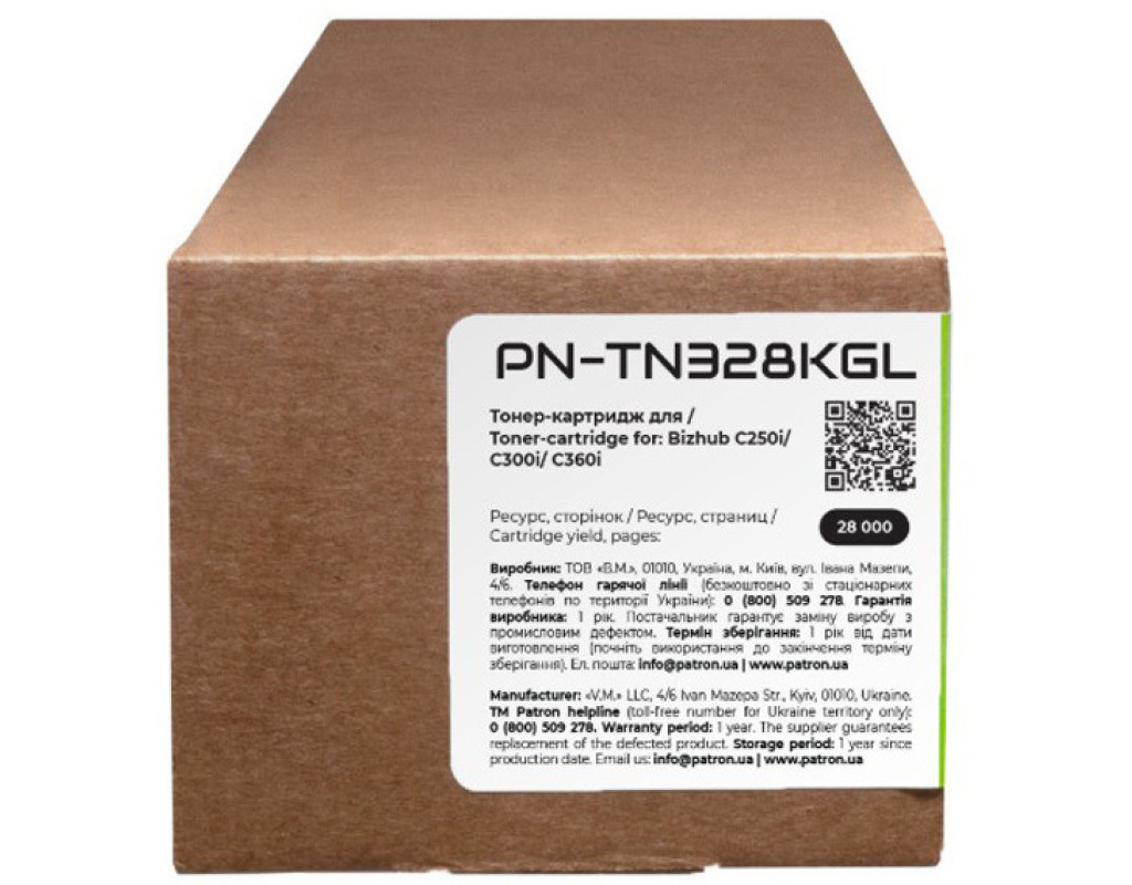 | Основні властивості Оптимальний варіант для користувача, що хоче заощадити; При виробництві картриджа використовується новий корпус; Гарантований ресурс; Економія 70-80% у порівнянні з оригінальними витратними матеріалами; Виробник додержується стандартів ISO 9001:2015, ISO 19752:2017, ISO 19798:2017 та STMC; Продукт українського виробника. Детальна інформація: Що таке сумісний картридж? Кожен користувач друкувальної техніки стикається з питанням купівлі нового картриджа і знаходить досить велику кількість пропозицій. Як зробити правильний вибір? Розглянемо основні варіанти: Виробники друкувальних пристроїв (т.з. OEM виробники) наполягають на використанні оригінальних картриджів. Їх основний недолік - висока вартість. Сумісні картриджі виробляються різними компаніями - сторонніми виробниками. Вони дають можливість істотно заощадити на друці, проте питання оптимального балансу між якістю друку, ціною, гарантією та ресурсом картриджа залишається вибором Покупця. Тонер-картридж сумісний Konica Minolta TN414 Green Label Patron (PN-TN414GL) гарантія Ми гарантуємо 12 місяців справної роботи картриджа та проведемо заміну продукції з виробничим дефектом. Якість друку Картриджі серії Patron Green Label виготовляються з використанням нових корпусів та повністю придатні для повторної заправки. Основна відміна серії Patron Green Label від картриджів низького цінового сегменту – якість комплектуючих, що забезпечує високу оптичну щільність друку, а також ресурс, аналогічний оригінальному картриджу. При виробництві картриджів Patron Green Label виробник дотримується загального стандарту ISO 9001:2015 і спеціальні стандарти, що використовуються в індустрії друку - ISO 19752:2017 для монохромних картриджів ISO 19798:2017 - для кольорових картриджів, а також STMC стандарт для контролю ресурсу. Захист навколишнього середовища Виробництво картриджів Patron Green Label відбувається з виконанням вимог міжнародного стандарту по захисту навколишнього середовища - ISO 14001:2015. Залишки матеріалів і комплектуючих, що використовуються для виробництва картриджів Patron Green Label, передаються на утилізацію відповідно Закону України "Про відходи". Для виробництва картонної упаковки ми використовуємо перероблені матеріали з нанесенням мінімальної кількості фарби. А конструкція коробки для картриджа дозволяє кілька разів відкривати і закривати його на "замок" для транспортування в сервісний центр. Ми закликаємо до нанесення мінімального впливу на довкілля. Тому заправляйте і відновлюйте картриджі Patron Green Label. Тонер-картридж сумісний Konica Minolta TN414 Green Label Patron (PN-TN414GL) економія на офісному друці Вартість картриджів серії Patron Green Label в середньому на 70-80% нижче оригінальних витратних матеріалів. Оптимальне співвідношення ціна-якість робить дану продукцію хорошим вибором для Клієнтів, що бажають заощадити на друці і не прогадати з якістю. Зовнішній вигляд Ми потурбувалися про те, щоб упаковка картриджа була не лише екологічною, функціональною, мала мінімально можливі фізичні розміри, але і містила усю необхідну інформацію. На зеленій етикетці знаходиться інформація про картридж, його сумісність з друкувальними пристроями, номер партії, дата виготовлення, контакти виробника, а також номер телефону безкоштовної гарячої лінії для українських споживачів. Сподіваємось, що наведена інформація дозволить Вам зробити правильний вибір. Ваш друк – наш