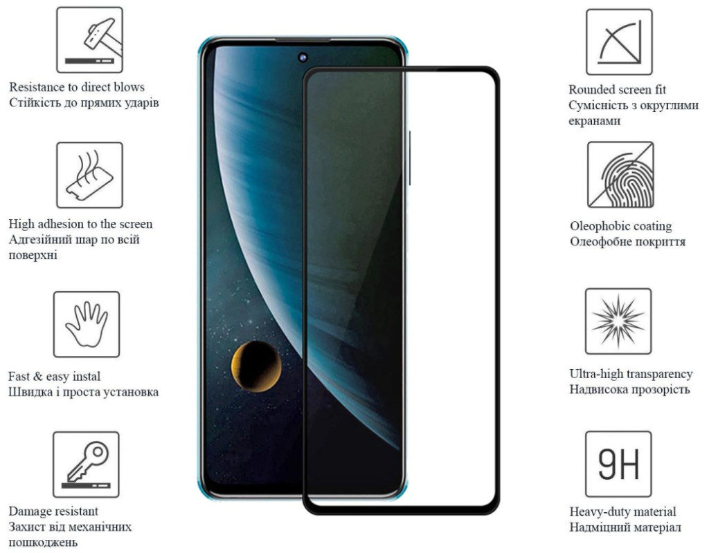 | Защитное стекло Drobak Full Glue – это эффективное решение для защиты экрана вашего смартфона от царапин, трещин и сколов, изготовлено из закаленного стекла, достаточно прочное, чтобы защитить экран телефона при падении на асфальт, при бытовых ударах, при взаимодействии с царапающими предметами (ключи, песок, лезвие ножа, гвозди, и т. п.). В то же время, защитное стекло Drobak достаточно тонкое и практически незаметное на экране. Совершенно не влияет на чувствительность сенсора смартфона. Пропускает 98% света, исключая потерю яркости и качества изображения экрана девайса. Особая форма стекла выполнена в соответствии с особенностями смартфона. Защитное стекло Drobak Full Glue легко наклеивается в "домашних условиях". Защитное стекло Drobak Full Glue — это качественный, практичный в использовании аксессуар, который поможет избежать дорогостоящей процедуры замены экрана смартфона, сохранит дисплею его первоначальный внешний вид. Особенности стекла: