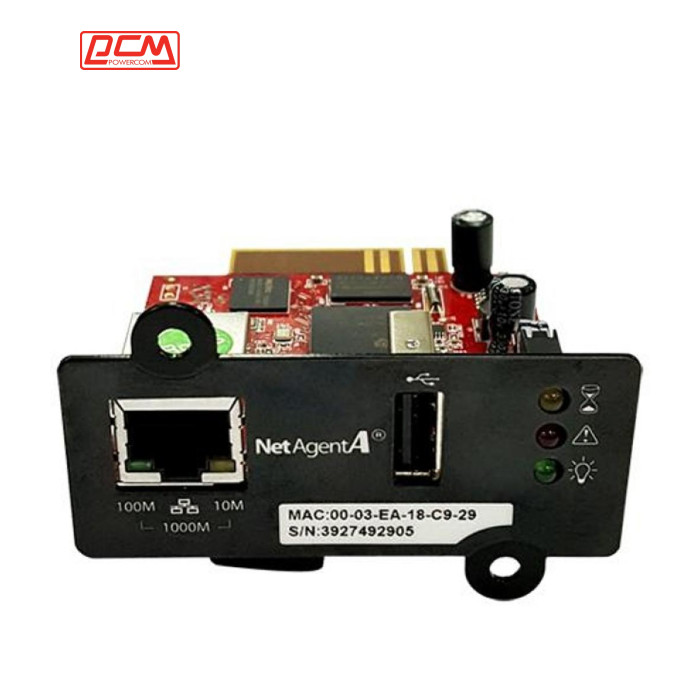 Встраиваемый SNMP-адаптер для ИБП Powercom серии MACAN моделей MAC, MRT обеспечивает удаленный мониторинг для централизованной защиты электросети. Использование совместно с ИБП SNMP-карты позволяет своевременно получать информацию о возникновении сбоев в электропитании и состоянии источника бесперебойного питания. SNMP-адаптер устанавливается в слот подключения на ИБП, а для организации мониторинга используется специальное ПО, свежую версию которого можно найти у нас на сайте. К настройкам управлению, панели мониторинга возможен доступ через стандартный web-браузер. Кроме этого, поддерживается функция отправки SNMP-trap, сообщений по электронной почте и широковещательная рассылка команды завершения работы по локальной сети. В числе прочих функций SNMP-карты: доступ через WAP с мобильного телефона, ведение истории событий, добавление в меню внешних ссылок и другие. |