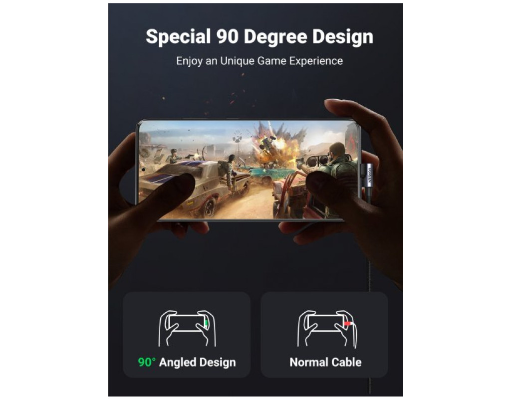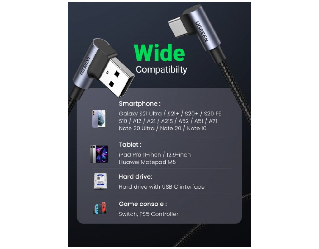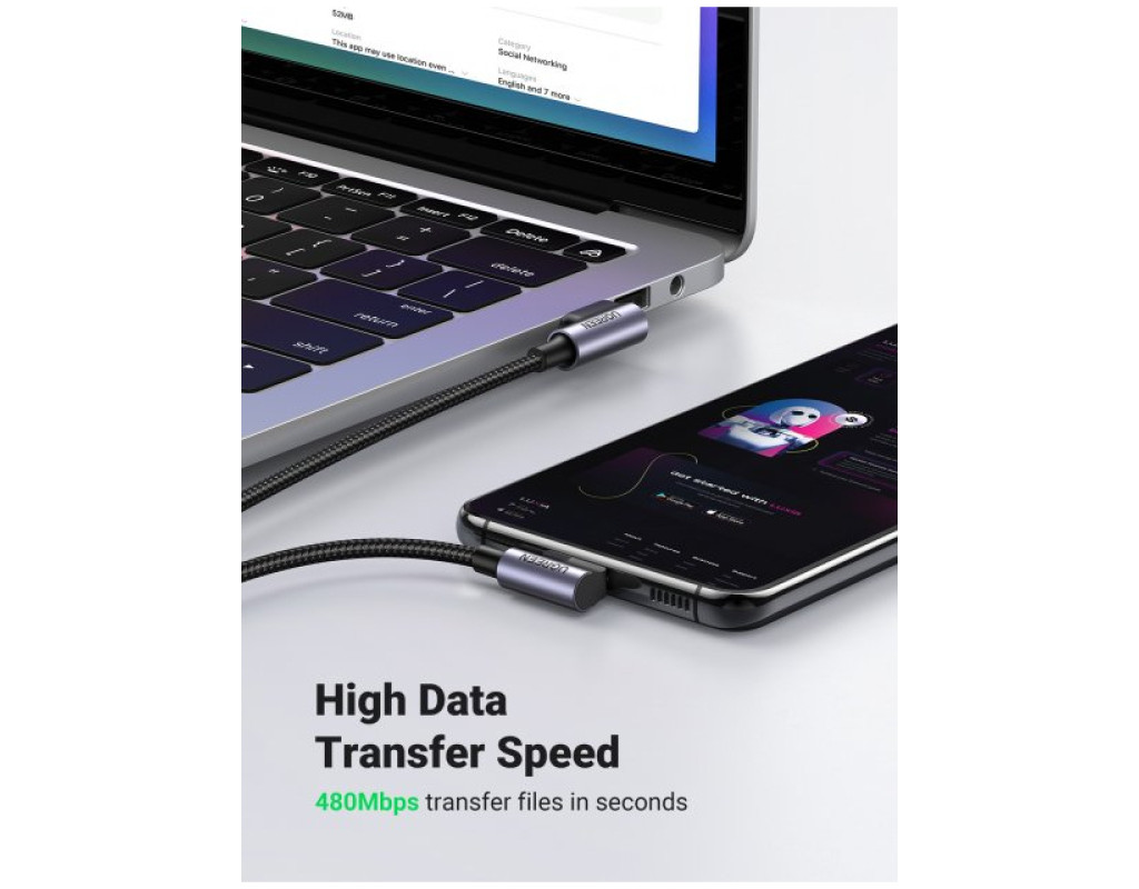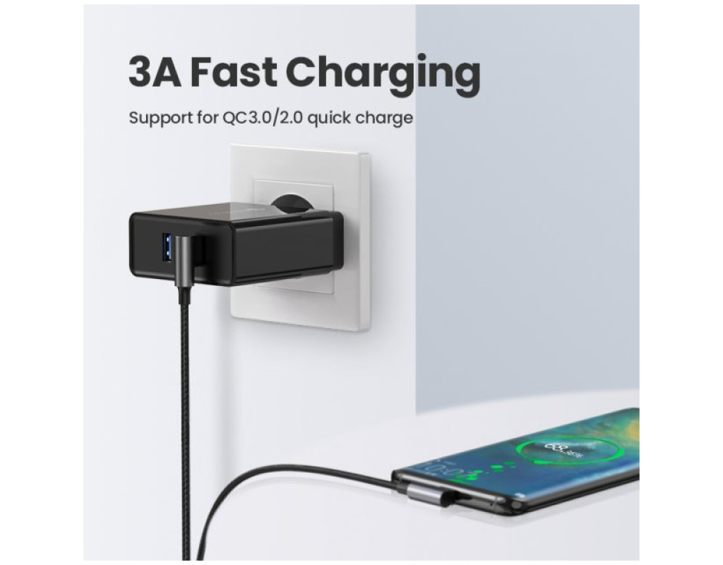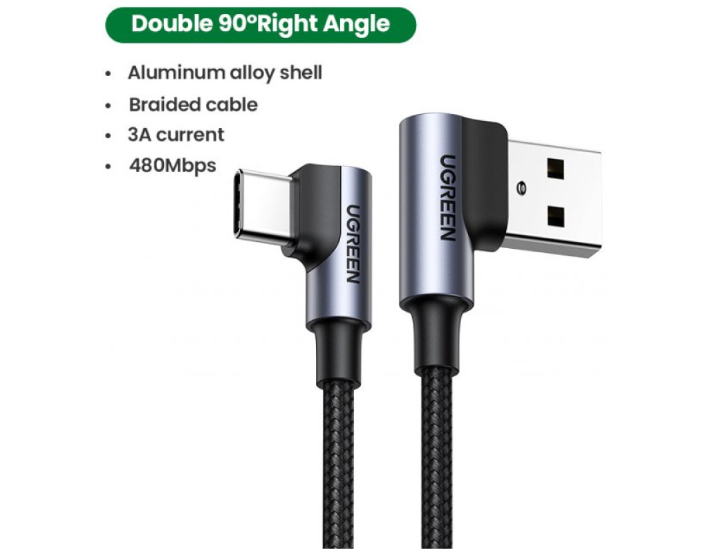 Дата кабель USB 2.0 AM to Type-C 1.0m US176 Both Angled 3A (Black) Ugreen (20856)