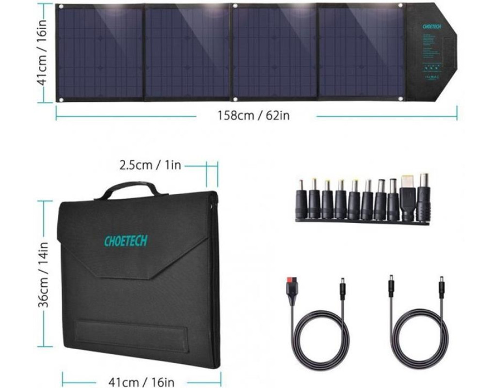 | Солнечная панель для УМБ Choetech 80W (SC007) – это отличное решение в области зеленой энергетики, которое превращает до 30% солнечной энергии в постоянный ток.