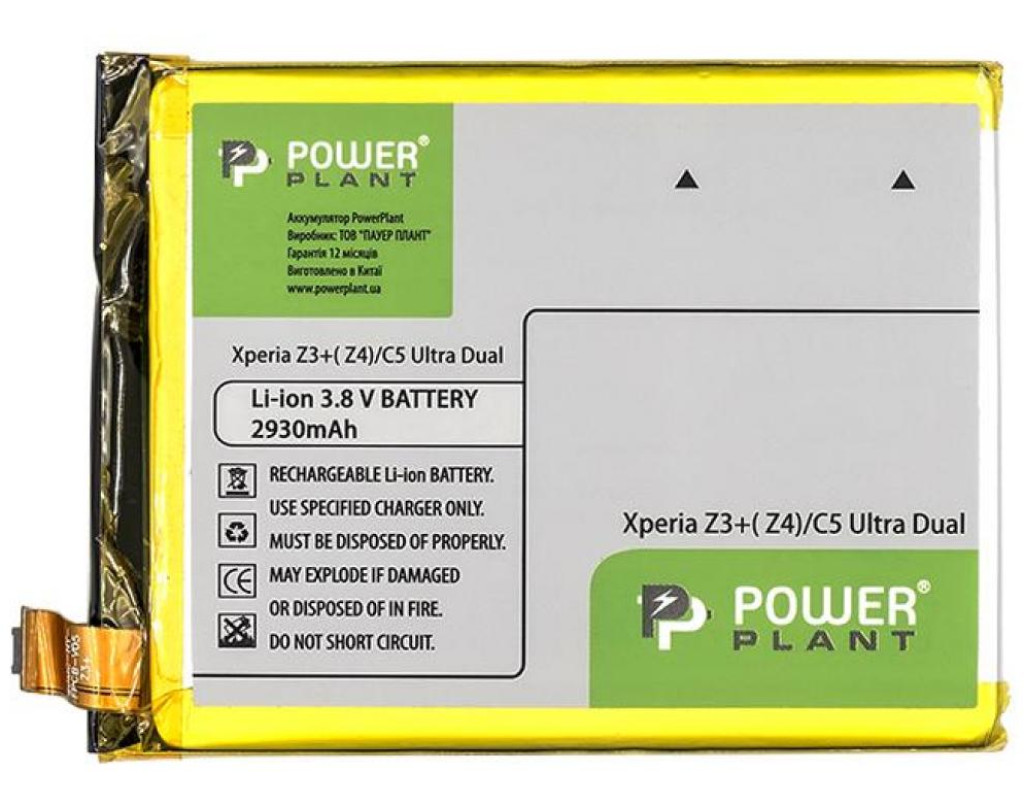 Аккумуляторная батарея PowerPlant Sony Xperia C5 Ultra Dual/Z3+/Z4 2930mAh (SM190102) — это компактная, стабильная и очень надежная аккумуляторная батарея, она поможет вам оставаться всегда на связи в командировках и загородных поездках. Это достаточно маленький, лёгкий не привередливый к периодичности зарядки аккумулятор, так как у него полностью отсутствует эффект памяти. Аккумуляторы PowerPlant имеют контролер заряда, разряда и короткого замыкания, что гарантирует долгую и безопасную работу Вашего аккумулятора. Выбирая PowerPlant Вы получите 100% качественный аккумулятор для надежной и продолжительной работы Вашего мобильного или КПК. Данное украинское предприятие PowerPlant было образовано в 2007 году. Ассортимент продуктов, выпускаемых под торговой маркой PowerPlant, состоит из таких аксессуаров для видео-, фототехники и мобильной электроники, как блоки питания, аккумуляторы и зарядные устройства, а также, из универсальных мобильных устройств, и фото и видео кабелей. Своими главными приоритетами компания PowerPlant называет полное удовлетворение желаний, потребностей и нужд своих потребителей. |