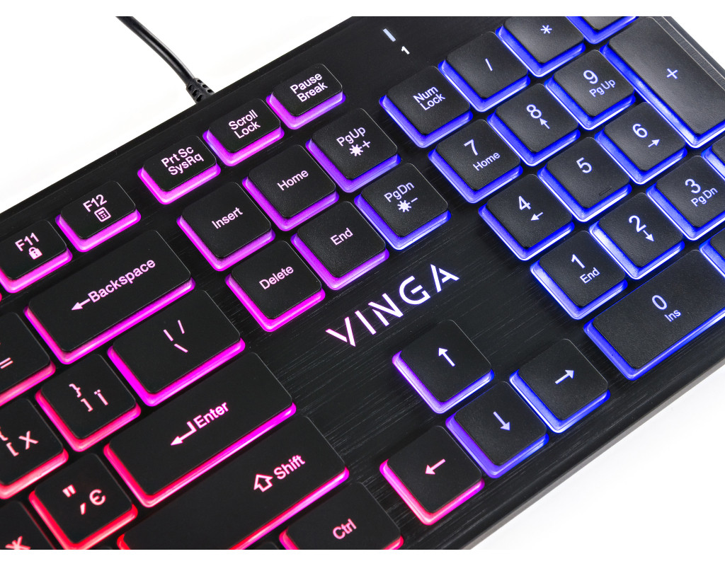 | Клавиатура Vinga KB410 black — это идеальный выбор для тех, кто ценит комфорт и функциональность при работе за персональным компьютером. Изделие выполнено в классическом черном цвете, который отлично подчеркивает сдержанный, но стильный дизайн. Эта мультимедийная клавиатура оснащена широким спектром возможностей, которыми просто невозможно не воспользоваться. Одна из главных особенностей Vinga KB410 — это встроенная подсветка клавиш, которая не только добавляет современный вид, но и улучшает видимость клавиш в темноте. Вы сможете работать и наслаждаться мультимедийным контентом даже ночью, без необходимости в дополнительном освещении. Кроме того, клавиатура имеет функцию регулировки громкости, что позволяет быстро настроить комфортный уровень звука, не отвлекаясь от основных задач. Полноразмерный формат клавиатуры обеспечивает наличие всех необходимых элементов, включая 104 клавиши, среди которых есть полный ряд функциональных клавиш F и блок NumPad. Это делает Vinga KB410 удобным решением для работы с большими текстами, расчетами и разнообразными программами. Клавиатура поддерживает украинскую, английскую и русскую раскладки, что делает её универсальной для пользователей из разных стран. С точки зрения технологических характеристик, Vinga KB410 black использует мембранную конструкцию, которая обеспечивает долговечность и защиту микросхем. Пленка из эластичного материала, проложенная поверх контактов, уменьшает риск повреждений от мелких механических поломок и помогает предотвратить попадание жидкостей во внутренние части, удерживая капли на поверхности. Еще одно преимущество — это интерфейс подключения USB, который позволяет быстро и стабильно подключить устройство к вашему ПК или ноутбуку. Длина кабеля составляет 150 см, что обеспечивает достаточную гибкость в расположении, а вес всего 413 грамм делает клавиатуру легкой в транспортировке. Vinga KB410 совместима с операционными системами Windows и Mac OS, что делает её идеальным решением для любого современного устройства. Её эргономичный дизайн не только радует глаз, но и гарантирует комфорт при длительном использовании. Этот продукт воплощает в себе отличное качество и функциональность, что делает его незаменимым для повседневных задач. |