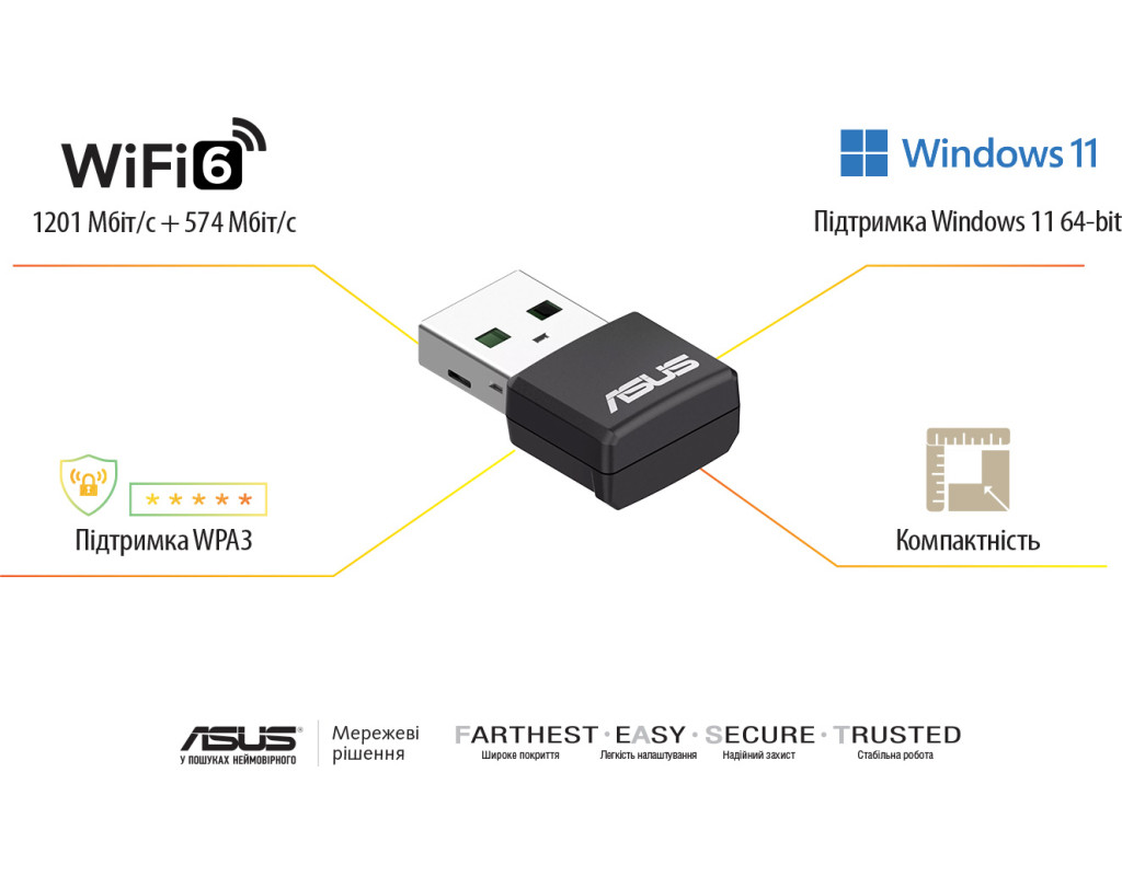 ASUS USB-AX55 Nano двухдиапазонный USB-адаптер WiFi 6