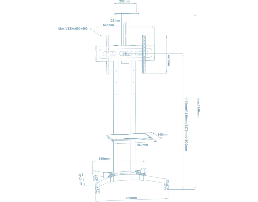 VESA 100 x 100, 100 x 200, 100 x 300, 1100 x 200, 1100 x 300, 1200 x 200, 1200 x 300, 1200 x 400, 150 x 100, 200 x 100, 200 x 200, 200 x 300, 200 x 400, 200 x 500, 300 x 200, 300 x 300, 300 x 400, 400 x 200, 400 x 300, 400 x 400, 500 x 200, 500 x 300, 500 x 350, 500 x 400, 600 x 200, 600 x 300, 600 x 400