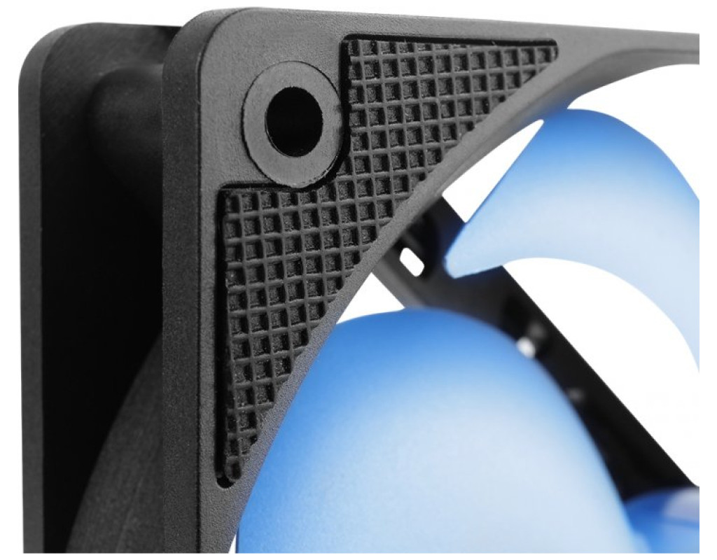 | Изогнутая крыльчатка вентилятора Изогнутая крыльчатка увеличивает силу воздушного потока и эффективность охлаждения, а также уменьшает сопротивление воздуха и шум от работы вентилятора. Защита от вибрацииСиликоновые вставки поглощают вибрацию, которая передается от вентилятора на корпус. Удобство обслуживанияСъемная крыльчатка облегчает уход за вентиляторами. |