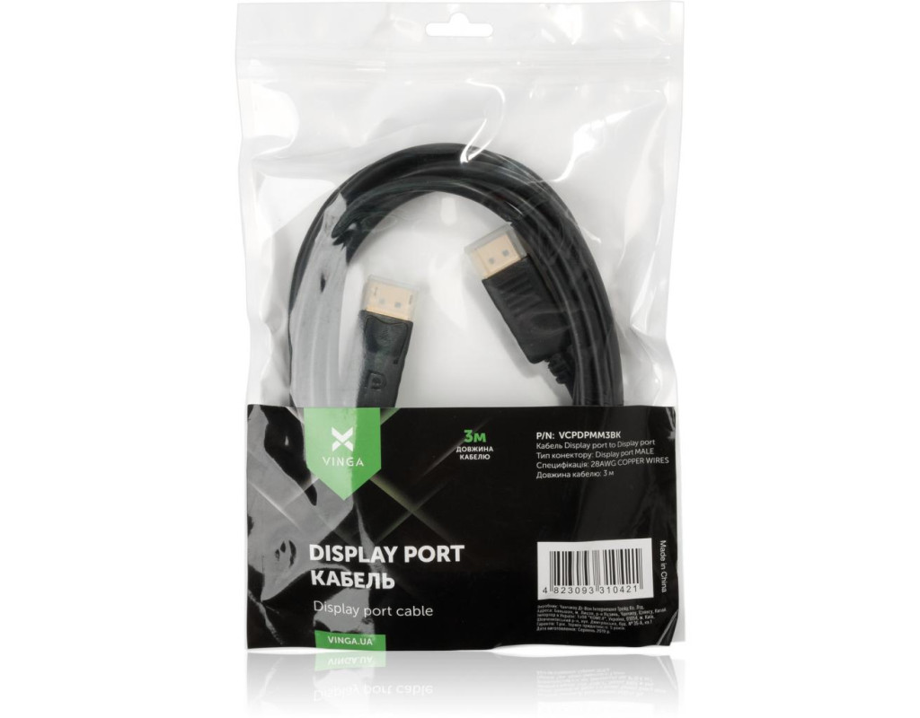 Кабель мультимедийный DisplayPort M to DisplayPort M 3.0m Vinga (VCPDPMM3BK)