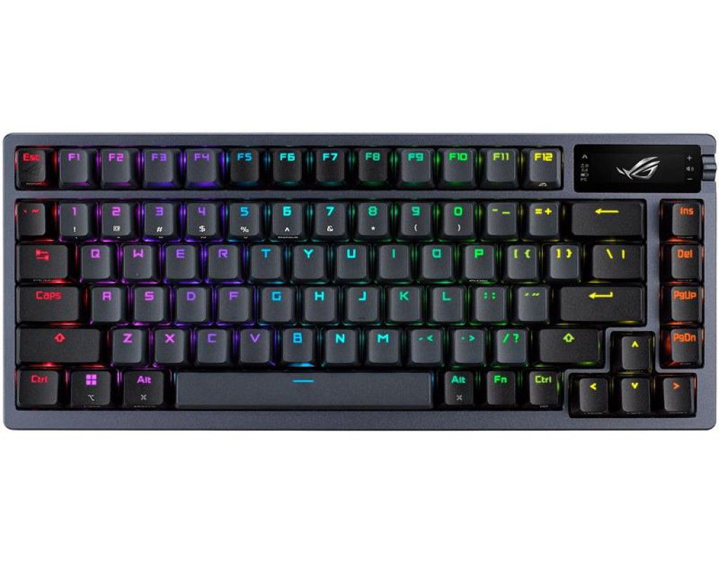 | Геймерская клавиатура ROG Azoth: возможность персонализации, формфактор 75%, упругая прокладка в креплении верхней металлической пластины, три демпфирующих слоя, предварительно смазанные механические переключатели ROG NX с возможностью горячей замены, стабилизаторы клавиш, двухкомпонентные PBT-колпачки, набор для смазки, три режима подключения, технология SpeedNova в режиме 2,4 ГГц, OLED-дисплей, 3-позиционный регулятор, три угла наклона, поддержка Mac.