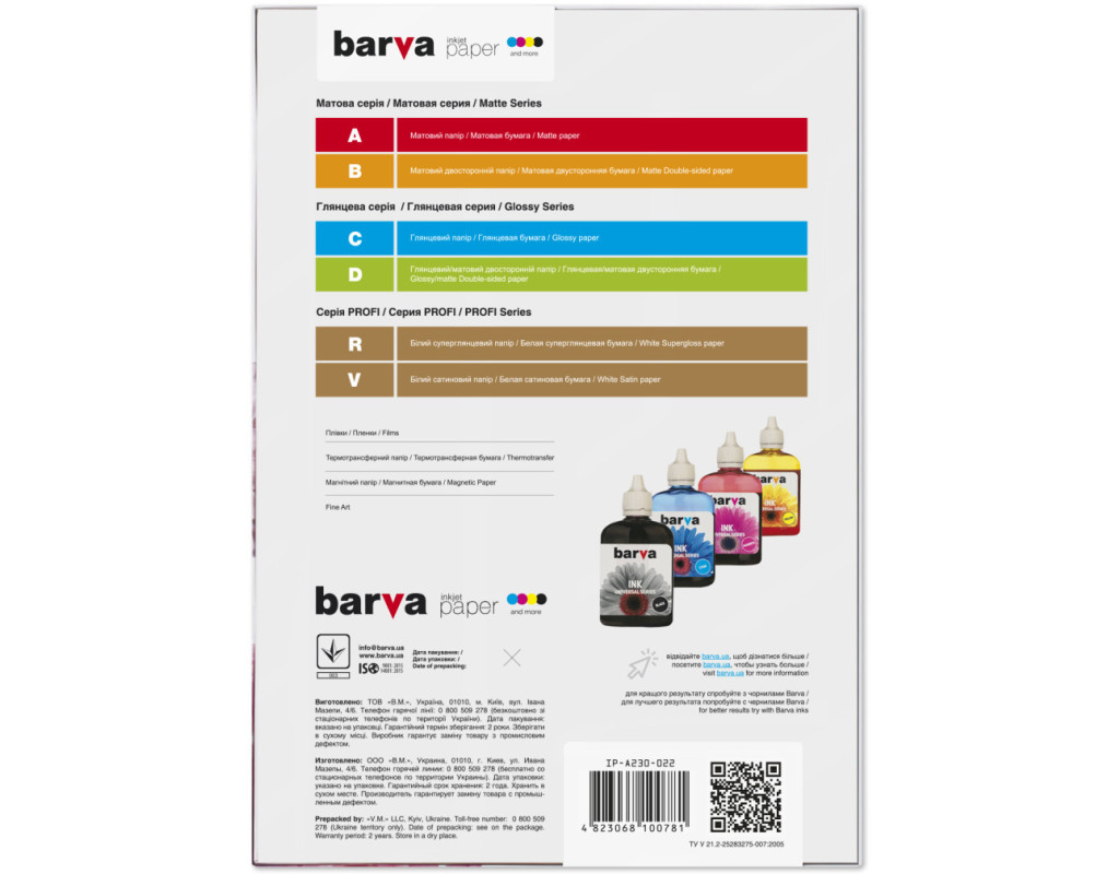 | Бумага BARVA A4 (IP-BAR-A230-022) Матовая бумага Barva обеспечивает качественную печать изображений повышенной четкости. Как правило, ее рекомендуют для печати текстовых документов, иллюстрированных рисунков, графиков и чертежей, а также плакатов и цветных проспектов. Сочные цвета и четкие линии - вот что привлекает в этой бумаге профессионалов. Изображения на матовой бумаге не имеют блеска, все его детали высококонтрастные, а тоны имеют бархатную глубину. |