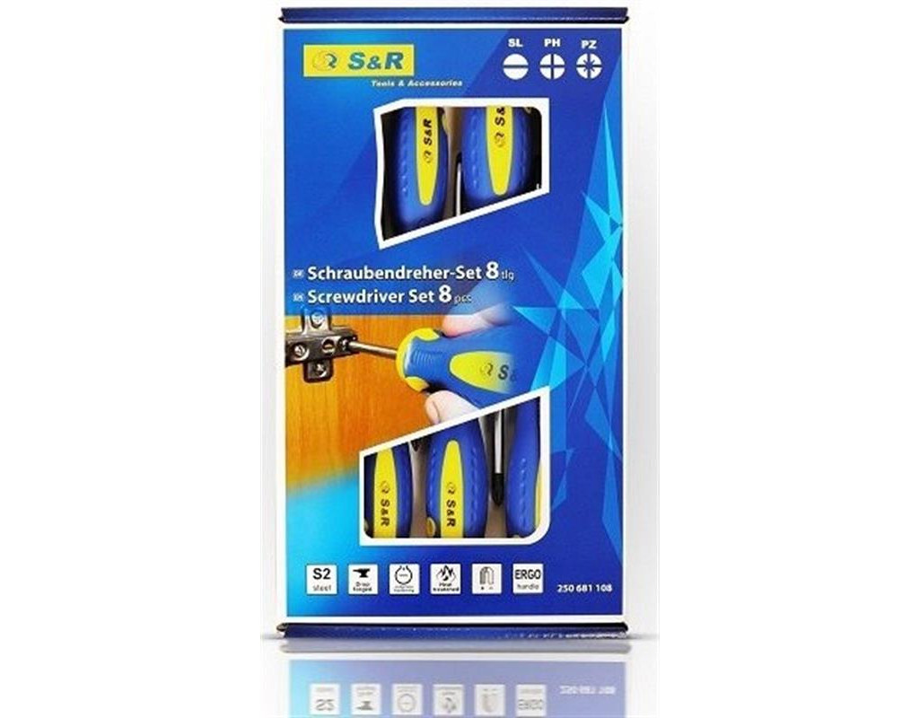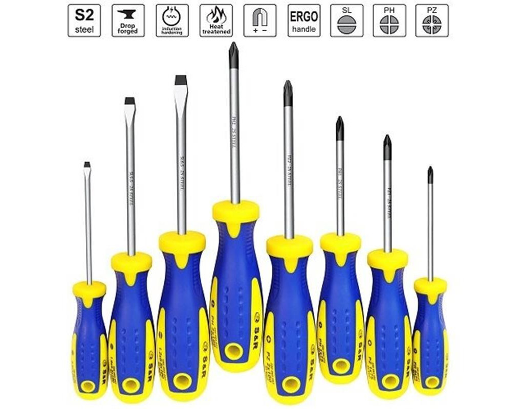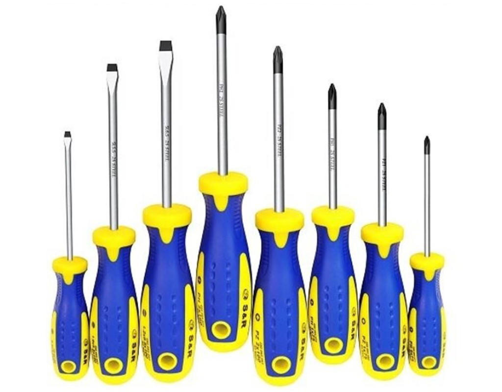 | Универсальный набор из 8 отверток включает в себя инструменты с разным шлицом - SL, PH, PZ. Они изготовлены из закаленной хром-ванадиевой стали, содержат удобные рукоятки из пластика и резины, и характеризуются высокой прочностью ввиду индукционной обработки.