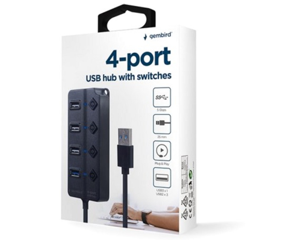 Концентратор Gembird 4 ports (1xUSB3.1+3xUSB2.0) switch black (UHB-U3P1U2P3P-01)