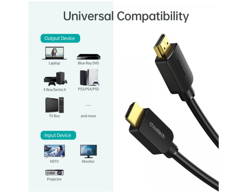 Кабель HDMI Choetech предназначен для эффектного просмотра и плавной быстрой детализации. Обеспечивает идеальное изображение и наслаждайтесь развлечениями в лучшем качестве. Кабель производства Choetech гарантирует, что фильмы, которые вы будете смотреть на телевизоре, будут иметь яркие и насыщенные цвета. Звук, с другой стороны, будет чист и без шумов. Аудио и видео посылаются без сжатия, с сохранением высокого качества. Изделие идеально подходит для подключения телевизора, DVD-плеера, Blu-Ray-проигрывателя, ресивера, проектора и новейших консолей PlayStation и Xbox. |