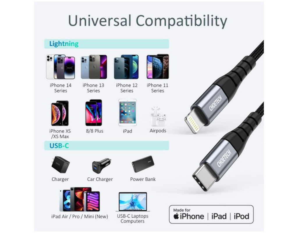 Дата кабель USB-C to Lightning 2.0m MFI Choetech (IP0041-BK)