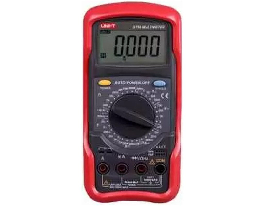 UNI-T UT56 - высокоточный мультиметр. Измерение тока до 20 А, сопротивления до 200 МОм. Функция удержания показаний. Защита от перегрузки на всех измеряемых величинах. Большой 19999-разрядный экран. Особенность мультиметра UT56Универсальный мультиметр UT56 - высокоточный измерительный прибор от надежной компании UNI-T. Выполняет практически все необходимые для повседневной работы функции. Измеряет все основные параметрыUT56 способен работать с: Кроме того, мультиметр может проверять коэффициент усиления биполярных транзисторов, осуществлять прозвонку цепи и тестировать диоды. Дополнительные функции мультиметра UNI-T UT56Рассматриваемый прибор оснащен функцией удержания результатов измерений. Если рядом нет листка бумаги и нет возможности записать текущие показания, то, нажав кнопку "HOLD", можно зафиксировать результаты. Заряд батареи экономится благодаря автоматическому отключению: прибор выключается самостоятельно при длительном бездействии. Высокая точность и надежностьКомпания UNI-T использует в производстве качественные материалы. Каждую модель тщательно настраивают и тестируют перед выпуском в продажу. Это гарантирует безупречную работу мультиметра UT56 долгое время. Большой жидкокристаллический дисплейДанная модель оснащена большим информационным экраном на 19999 разрядов. Благодаря этому повышается точность отображения результатов. Мультиметр UNI-T UT56 защищен от механических поврежденийКорпус прибора изготовлен из прочного пластика. Он одет в прорезиненный чехол, основная задача которого – защита от падения и ударов. Производитель заявляет, что падения с высоты 1.5 м можно не опасаться. Защита от перегрузокМультиметр UNI-T UT56 обладает электронной защитой от различного рода перегрузок. Такая функция не ограничена измеряемыми величинами. То есть, даже при работе с силой тока в 20 А, вы можете быть уверенными, что при неполадках не пострадает ни прибор, ни измеряемый элемент. Специальные разъемыОсобенность данной модели является также и то, что производитель отдельно разместил специальные разъемы для тестирования диодов и проведения проверки транзисторов. Мультиметр UNI-T UT56 – это многофункциональное измерительное устройство. Несмотря на наличие широких возможностей, его можно отнести к разряду бюджетных устройств. Данная модель отлично справится со своими обязанностями и будет надежным помощником радиолюбителям и радиотехникам. |