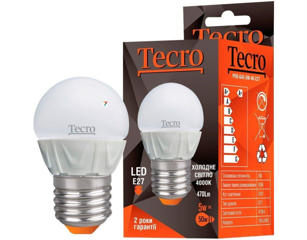 | Светодиодная лампа Tecro LED G45 5W 4000K E27 (PRO-G45-5W-4K-E27) с цоколем типа E27 это достойная и эффективная замена ламп накаливания, галогенных и энергосберегающих ламп. Это самый современный источник света, который характеризуется отличными световыми параметрами, качеством исполнения, функциональностью, надежностью. Произведена с использованием инновационных чипов, обеспечивающих максимально возможную яркость света. Имеет показатель энергоэффективности гораздо выше, чем у традиционных источников света. При потреблении всего 5 Вт, лампа имеет световой поток в 470 Lm. Температура цвета лампы составляет 4000 К (нейтральный свет). Она обеспечивает качественную мягкую светодиодную подсветку с высокой цветопередачей, нечувствительную к перепадам напряжения. Светодиодная лампа G45 мгновенно включается и имеет защиту от перепадов напряжения. |