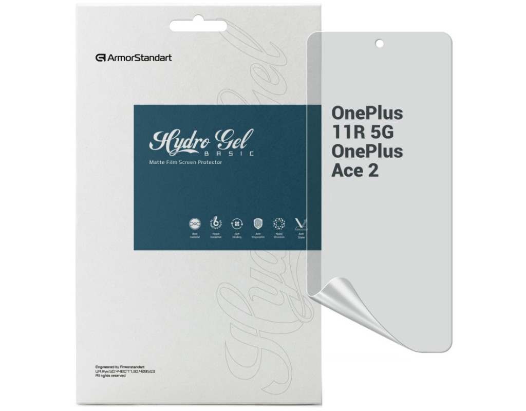 Назначение - для телефона, Вид покрытия - защитное, гидрогелевая, Совместимость с моделями - OnePlus Ace 2, OnePlus 11R 5G, Количество в упаковке - 1 шт