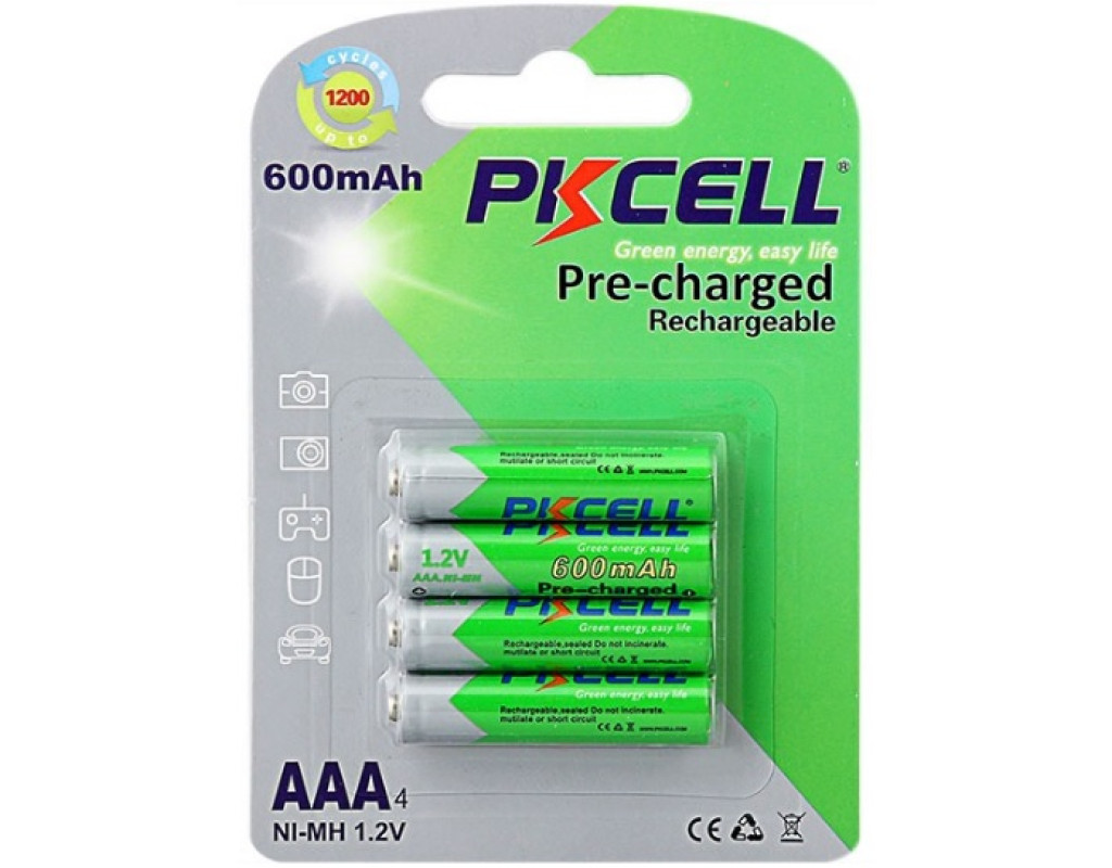 | Акумулятор PKCELL 1.2V AAA 600mAh NiMH Already Charged, 4 штуки у блістері ціна за блістер, Q12 |