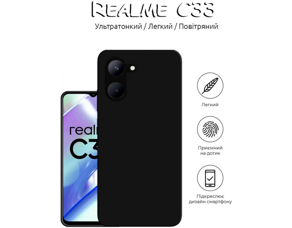 совместимость с моделями - Realme C33, Тип чехла для телефона - накладка, Назначение - модельный, Цвет - черный