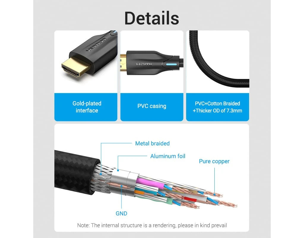 Кабель мультимедийный HDMI M to HDMI M 2.0m 8K cotton braided black Vention (AAUBH)