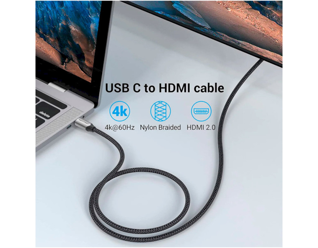 Кабель мультимедийный USB-C to HDMI M 1.5m 4K60Hz Thunderbolt 3 HDCP2.2 black VENTION (CRBBG)