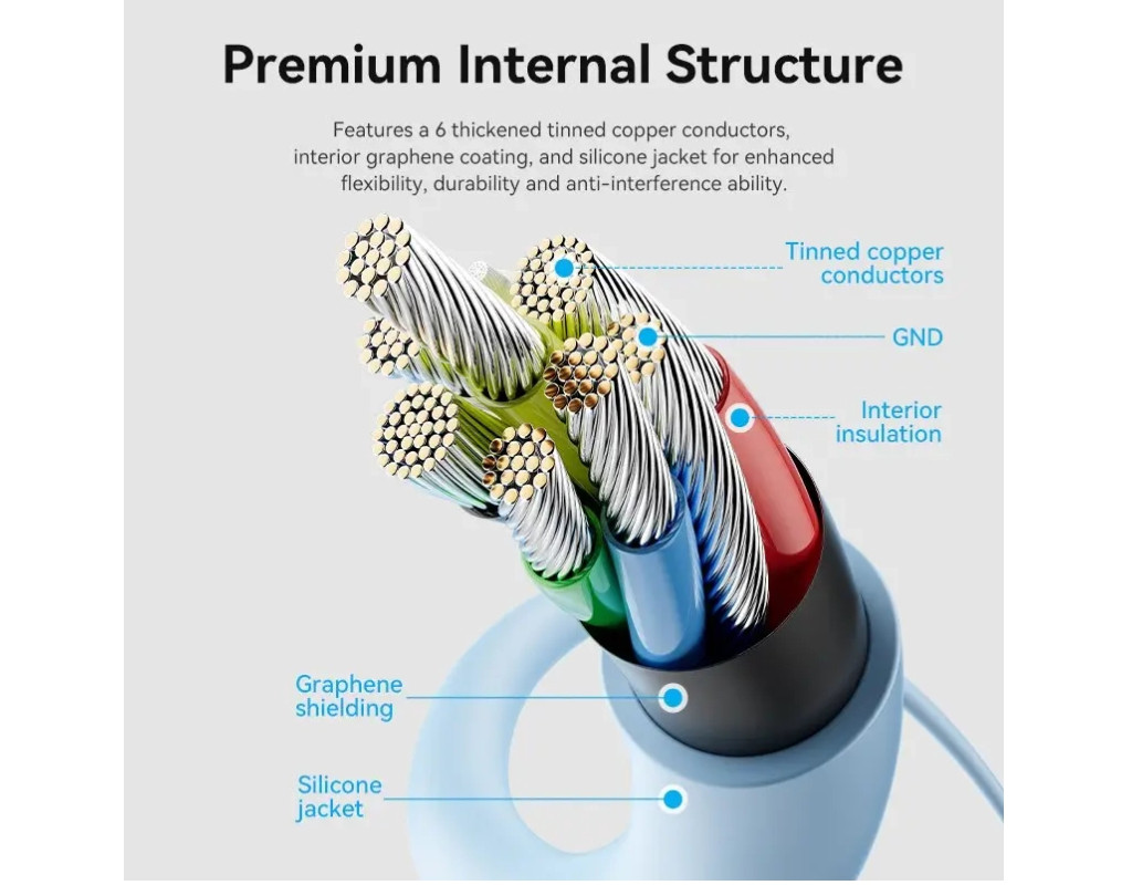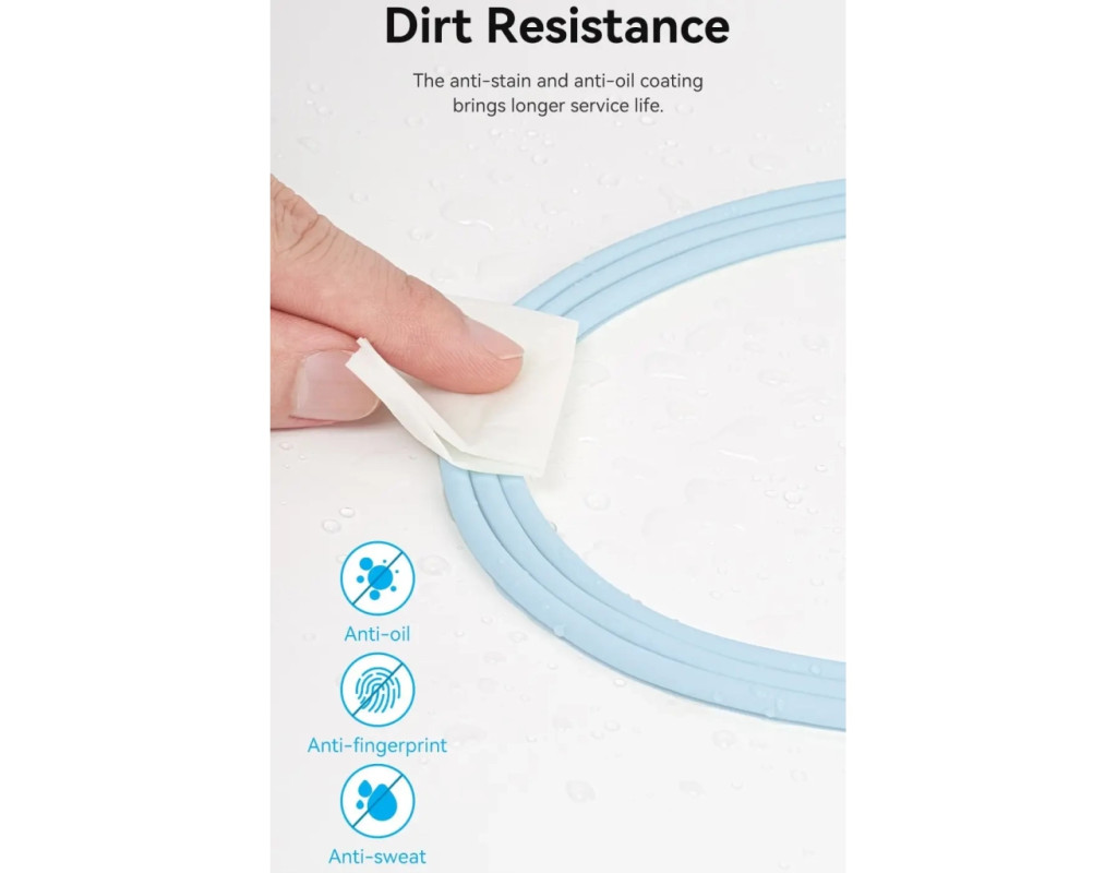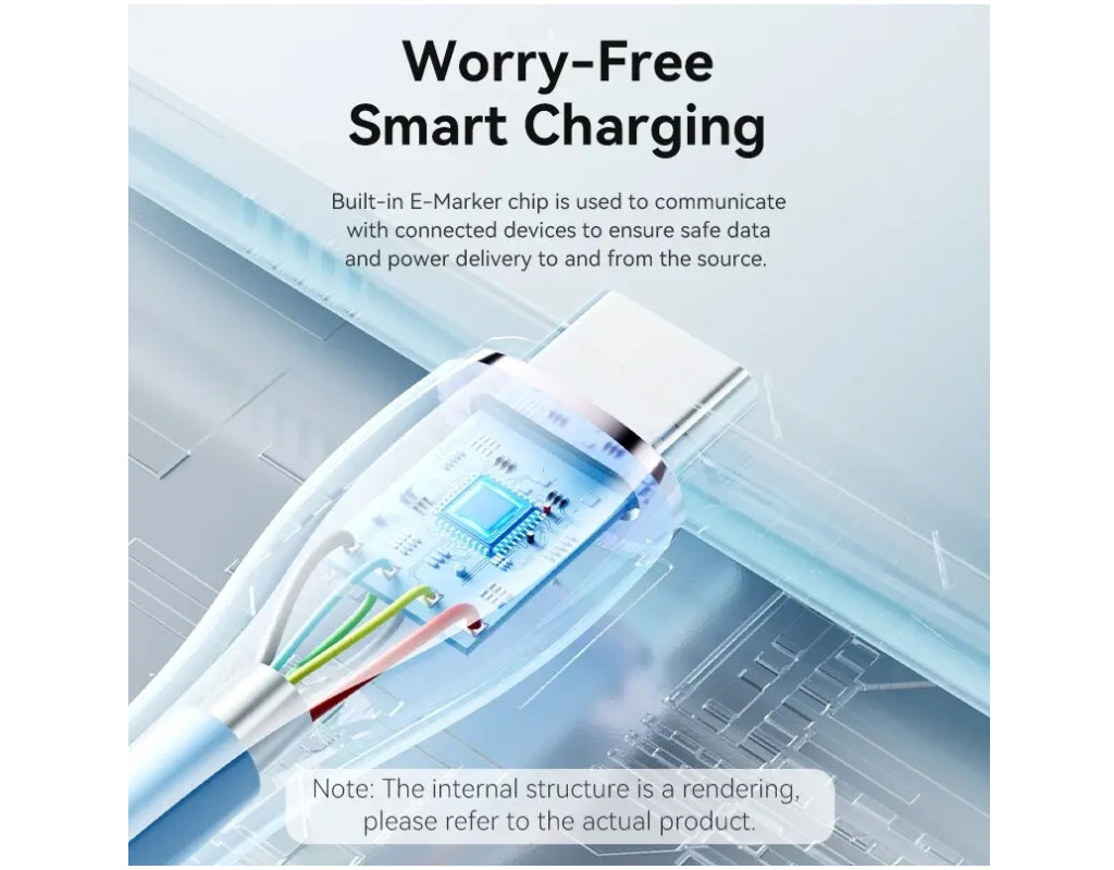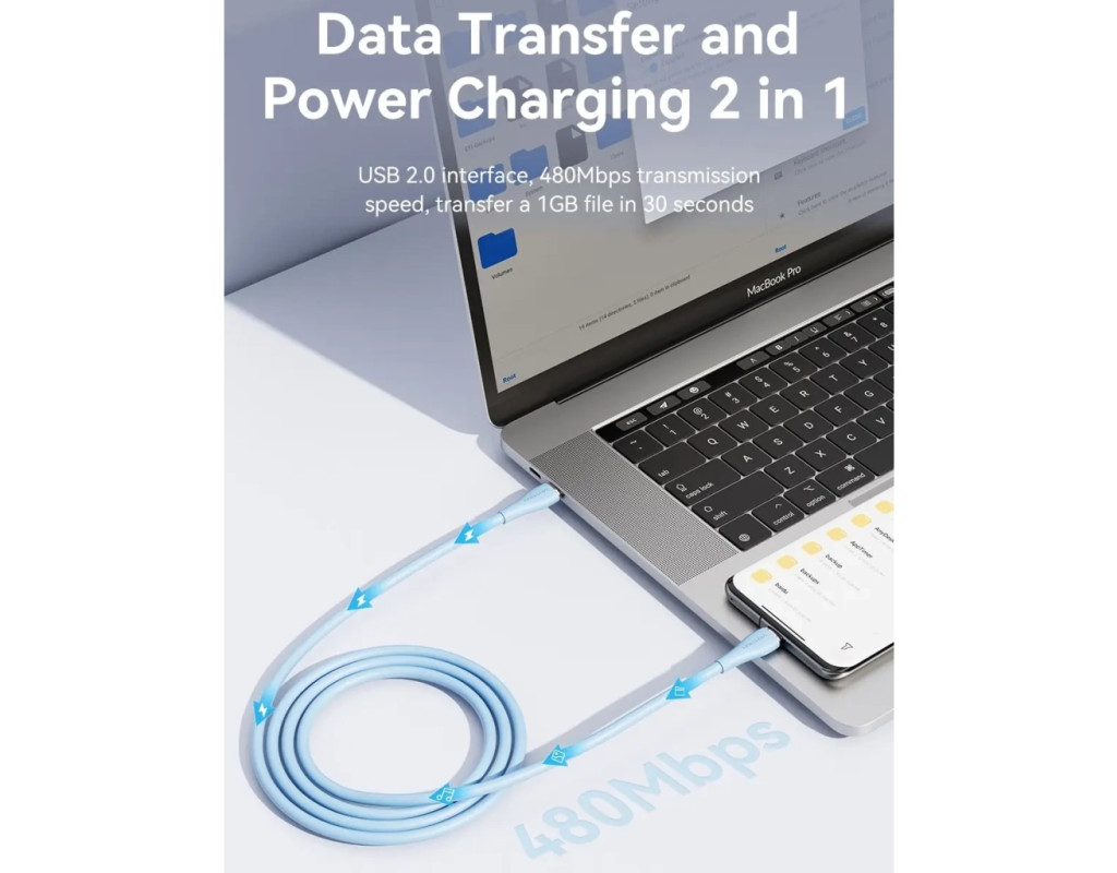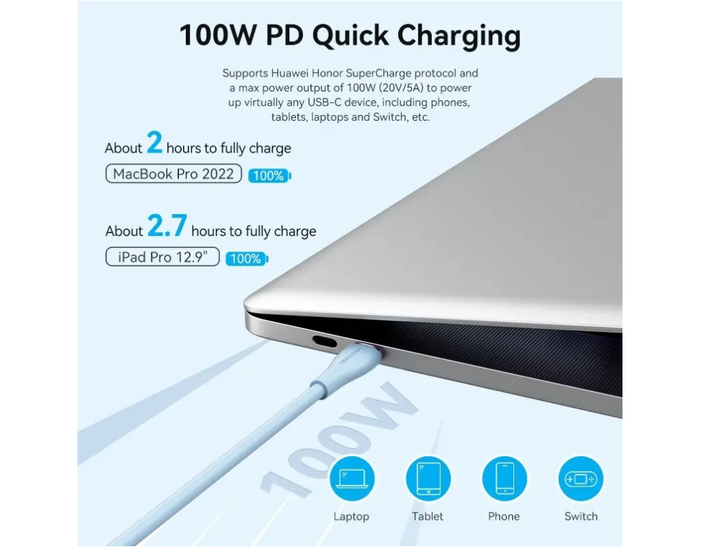 Тип - кабель, Тип коннектора 1 - USB Type-C, Тип коннектора 2 - USB Type-C, длина - 1 м, Номинальный ток - 5 А, материал: силикон, 100W, QC 4.0, Цвет - голубой