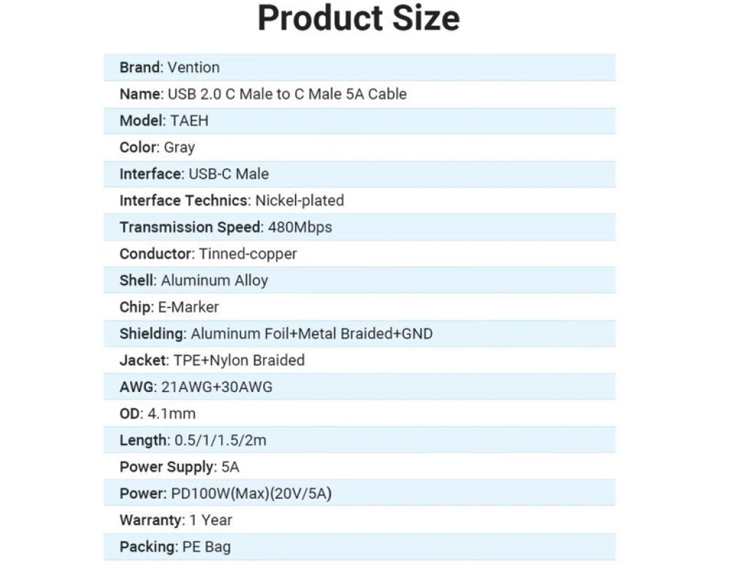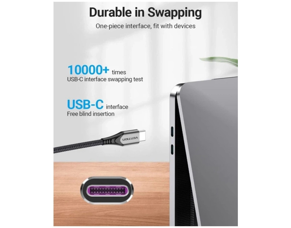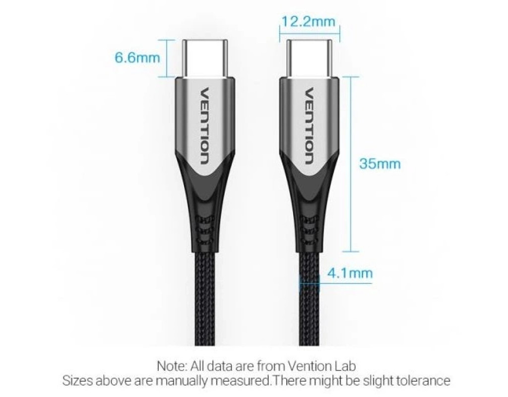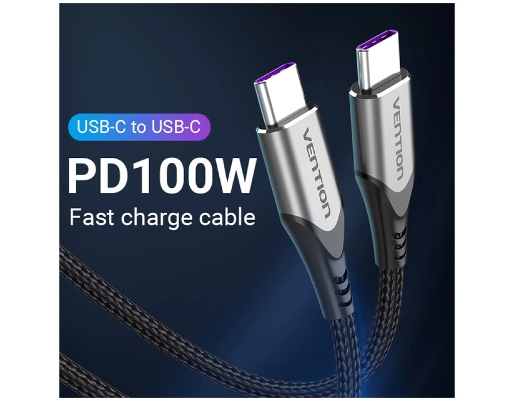 Дата кабель USB-C to USB-C 2.0m 5A aluminum gray Vention (TAEHH)
