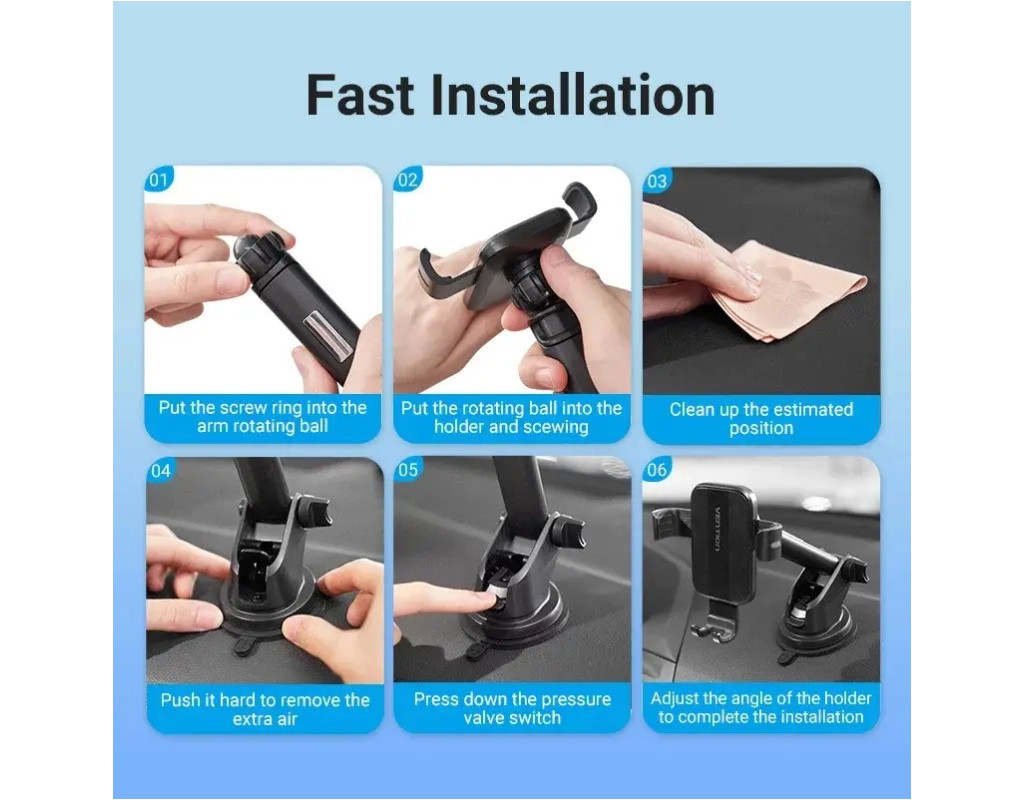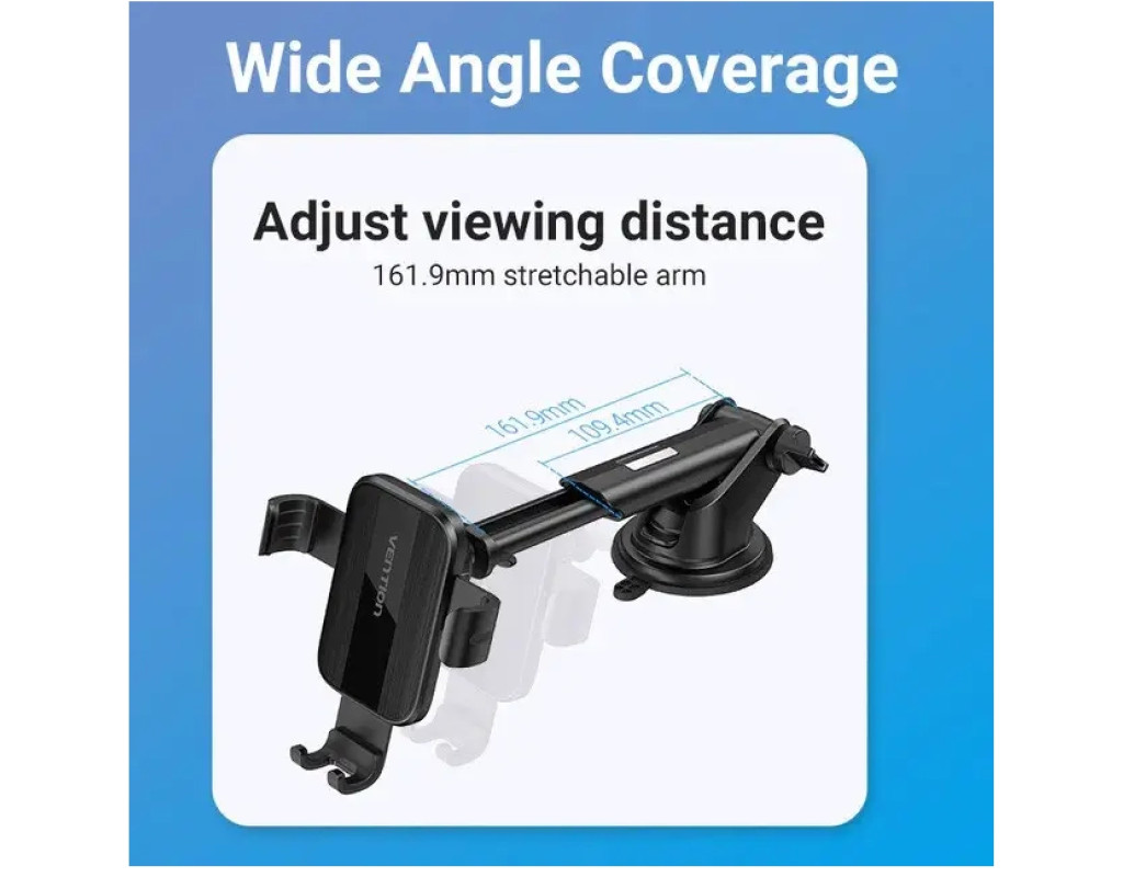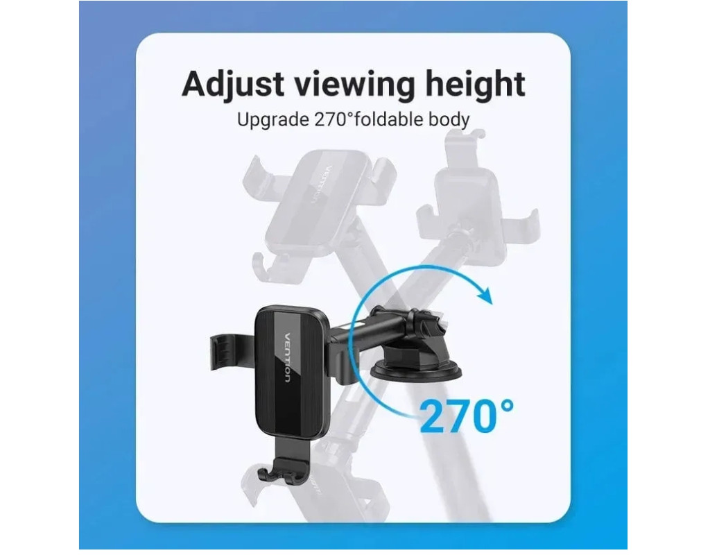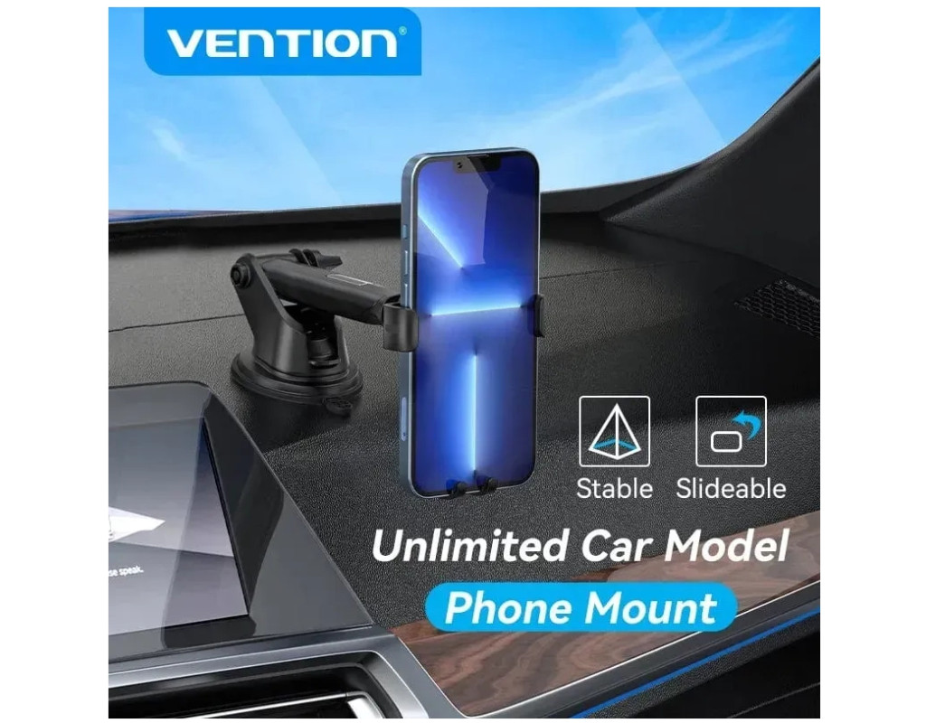 Автодержатель для телефона с присоской Vention — мощная присоска, регулировка, надежная 3х контактная фиксация. Автодержатель надежно крепится к стеклу или другим поверхностям автомобиля. Совместим с телефонами 4.7" — 7.2", крепление глубиной 12 мм отлично подходит для телефона с чехлом. Особенности: