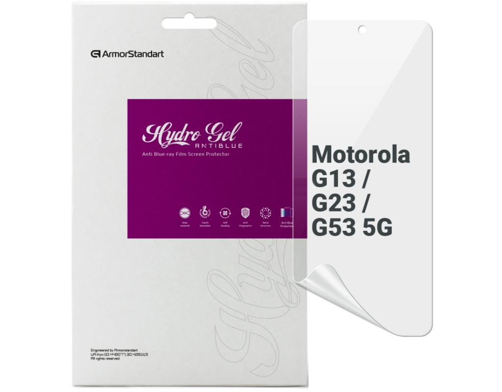 Назначение - для телефона, Вид покрытия - защитное, гидрогелевая, Совместимость с моделями - Motorola G13, Motorola G23, Motorola G53 5G, Количество в упаковке - 1 шт