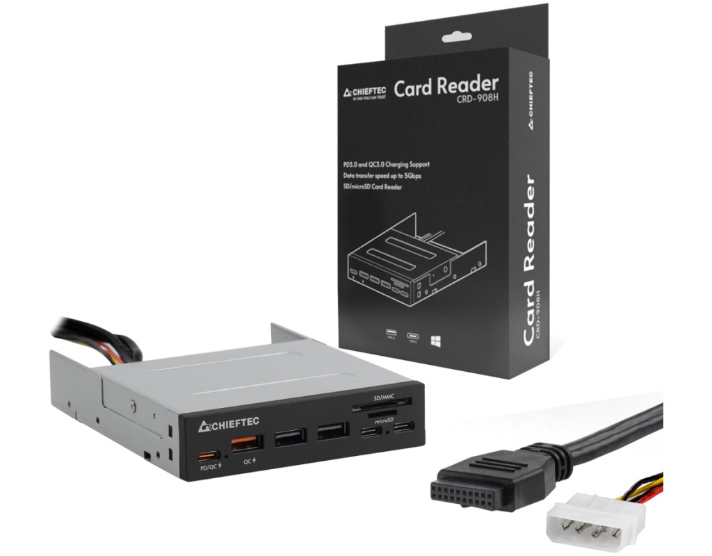 Считыватель флеш-карт Chieftec 3.5" 2xUSB3.2/2xType-C/1xPD3.0/1xQC3.0 USB (CRD-908H)